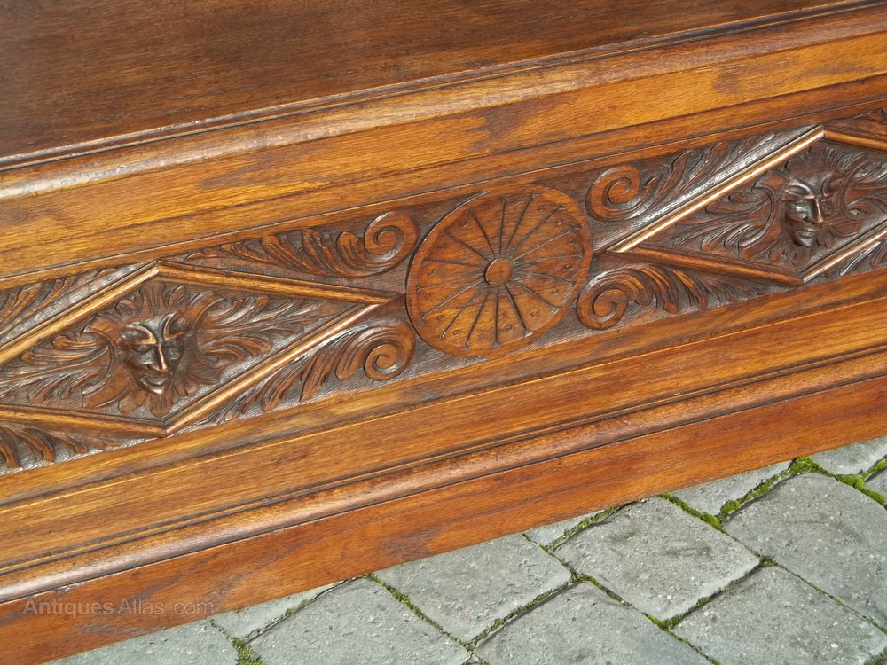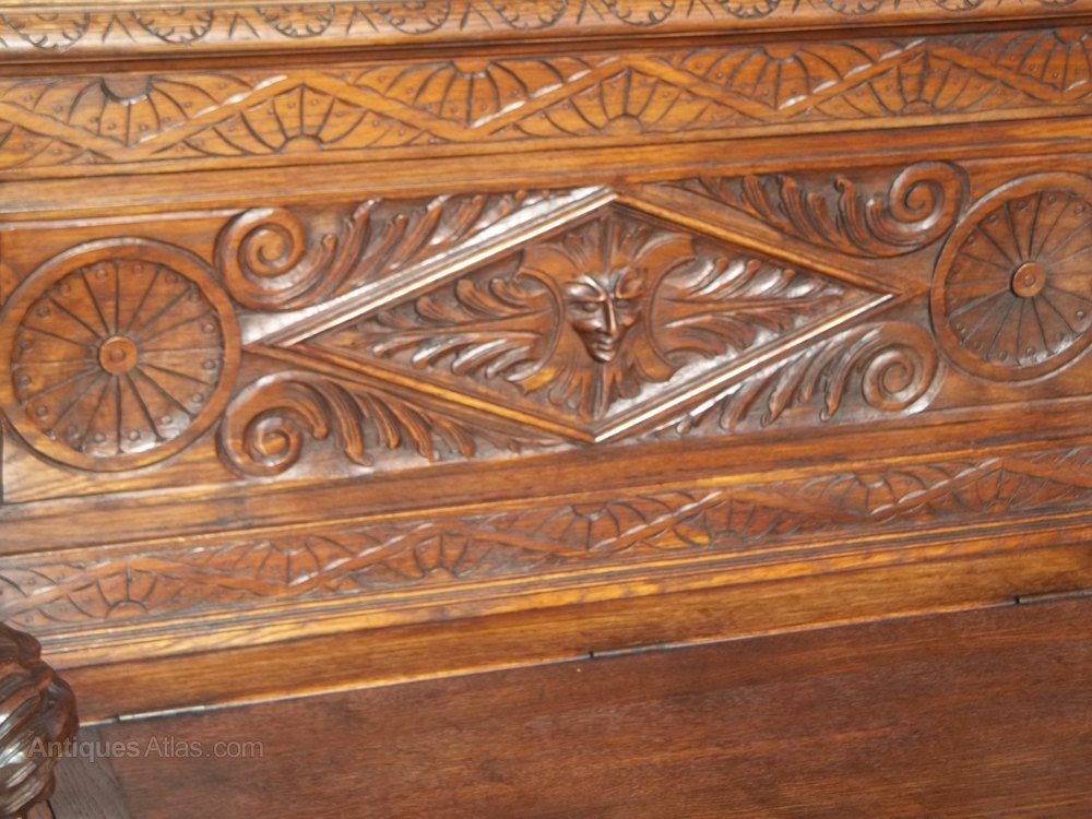 Victorian Green Man Oak Monk Bench