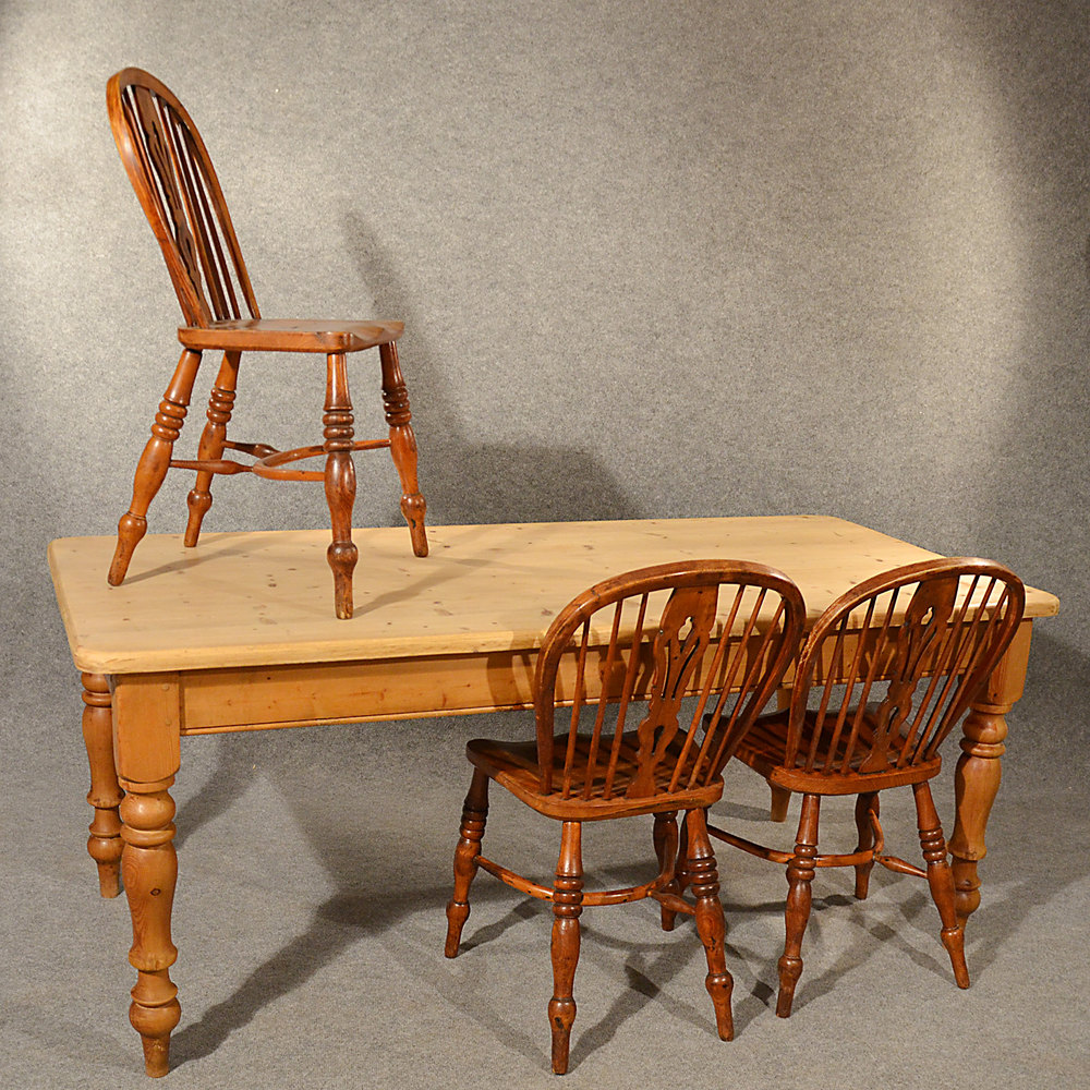 Quality Large Pine Kitchen Dining Table - English Victorian - c1900