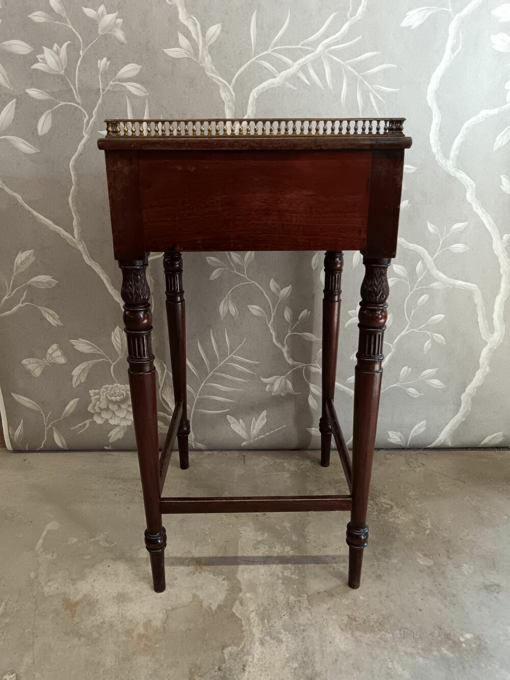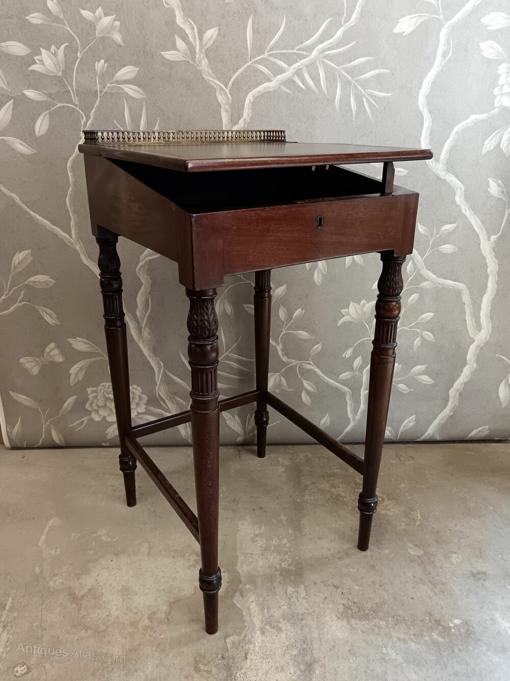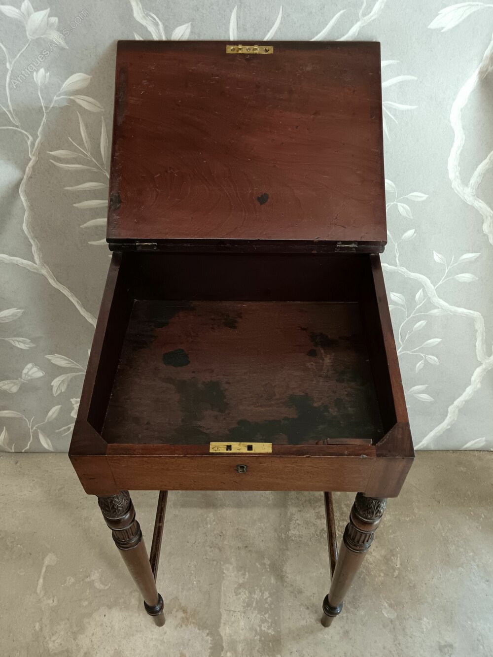 A delightful mahogany writing desk of small proportions raised on beautifully turned legs with carved capitals.