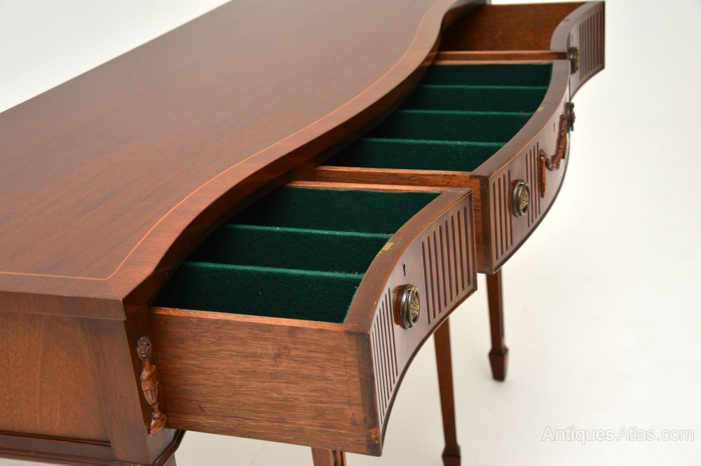 A large and impressive antique mahogany side table in the Sheraton style, this dates from around the 1930’s period.