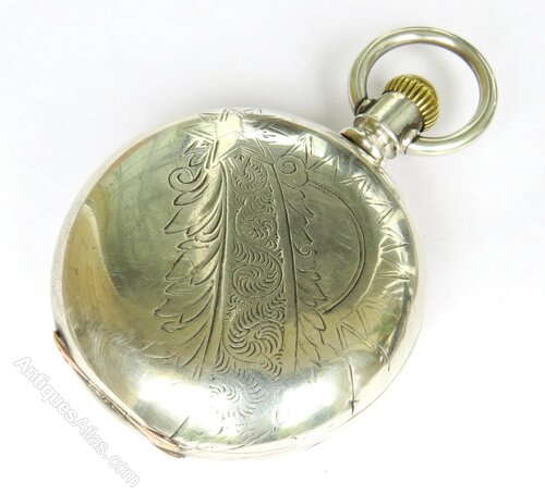 The watch is larger than a standard 50mm pocket watch, this one measures 59mm diameter excluding the winding stem and the loop. The case is coin silver and was made by Blauer & Sperry who had a factory in Chicago. Coin silver was usually 90 percent pure silver and 10 percent copper. It has the smallest amount of silver in a metal that could be legally marketed as silver in the United States.