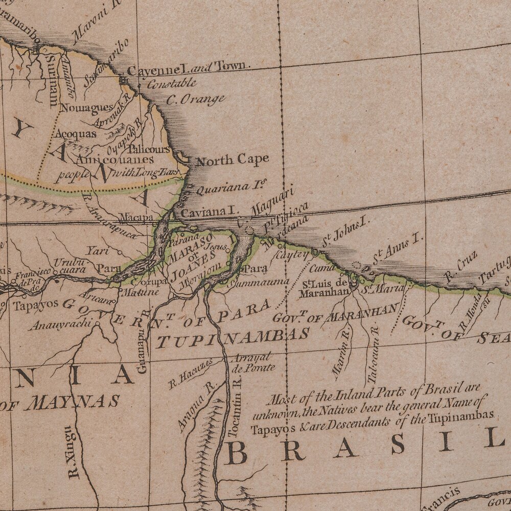 Delightful Georgian period cartography depicting the continent of South America in fine detail