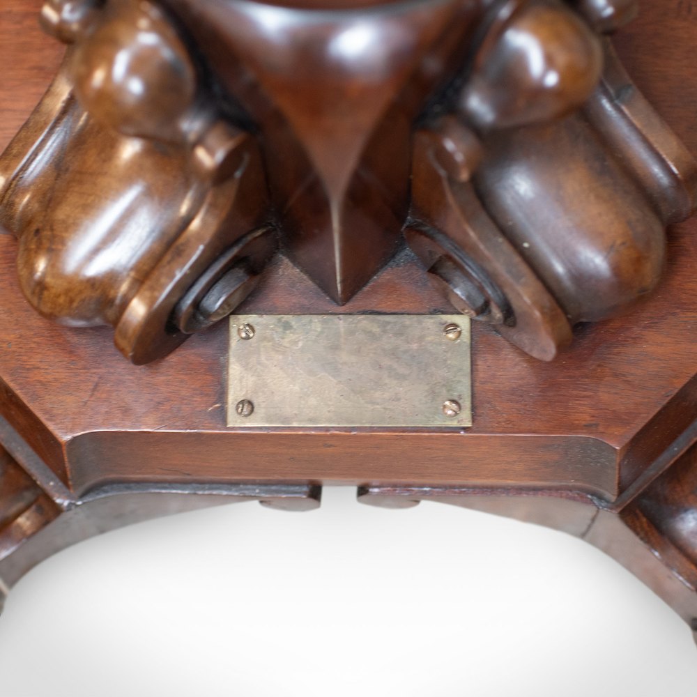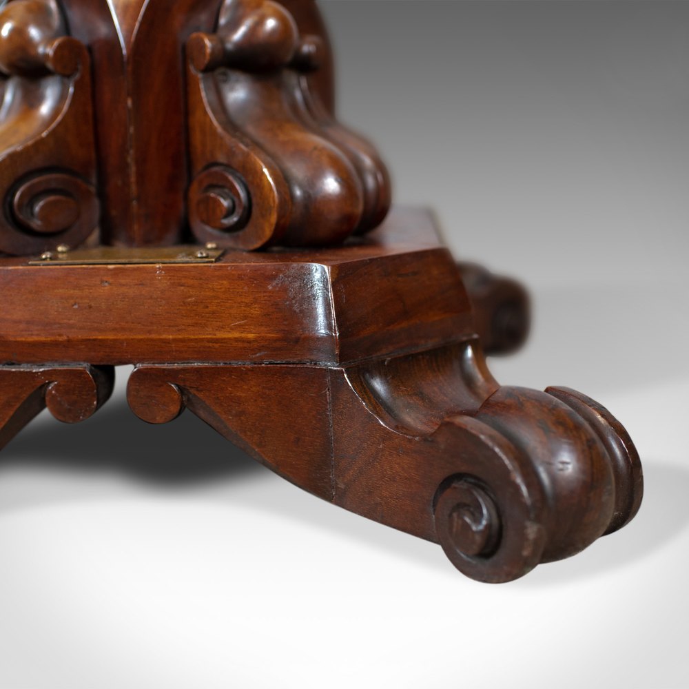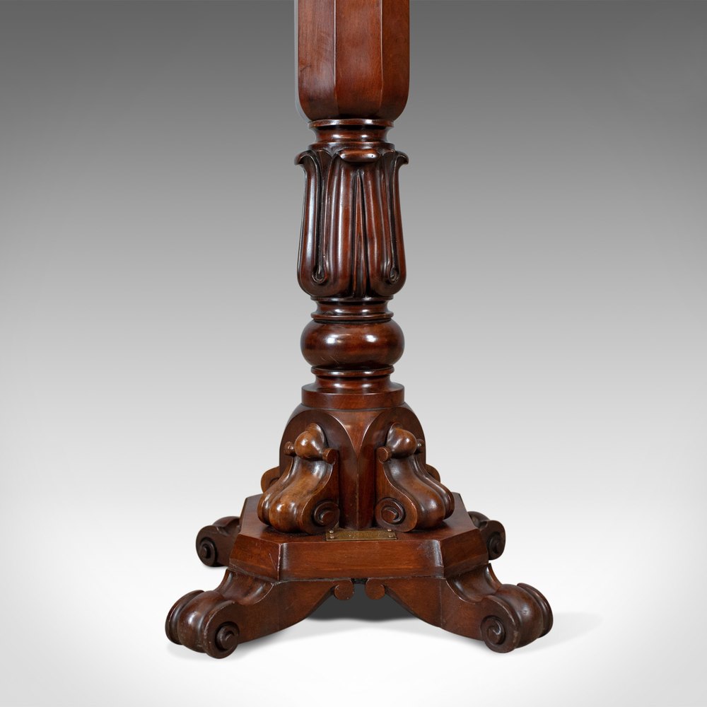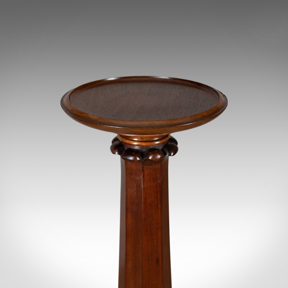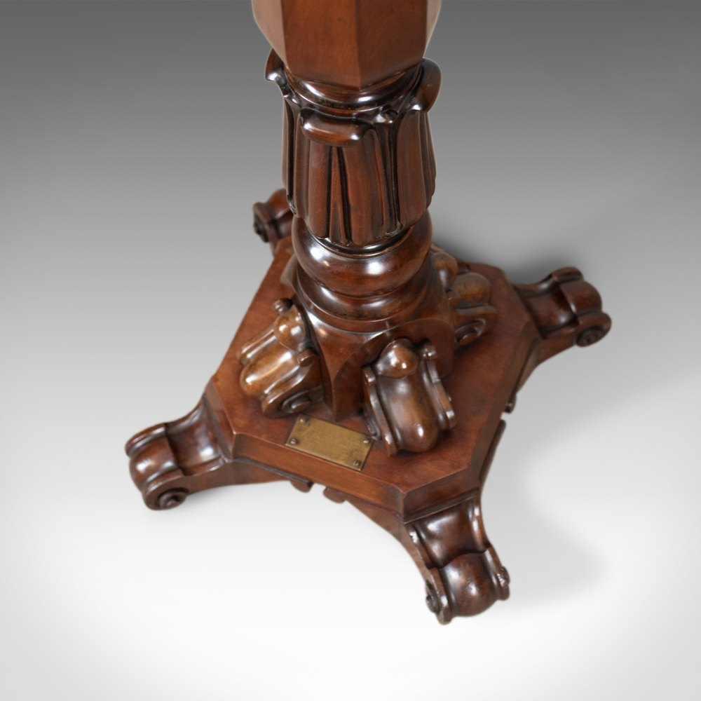 This is an antique torchere, an English, William IV plant stand in mahogany dating to circa 1835.