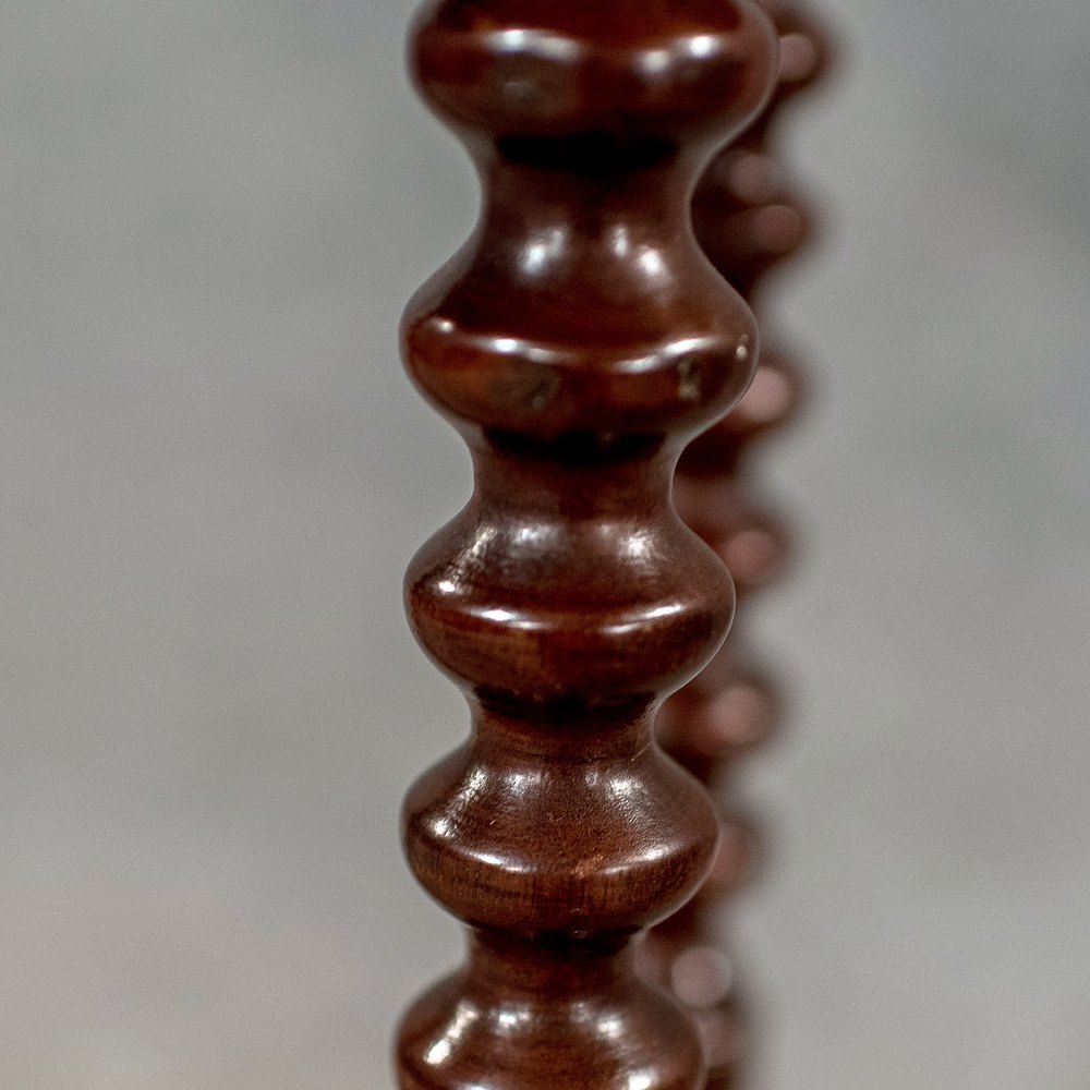 Rising from a cranked leg set, united with a centre bulb featuring fine finials, in to an elegant bead-turned triple stem