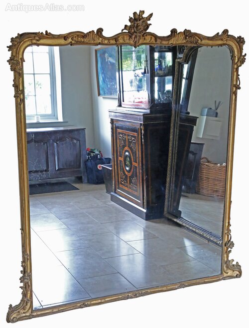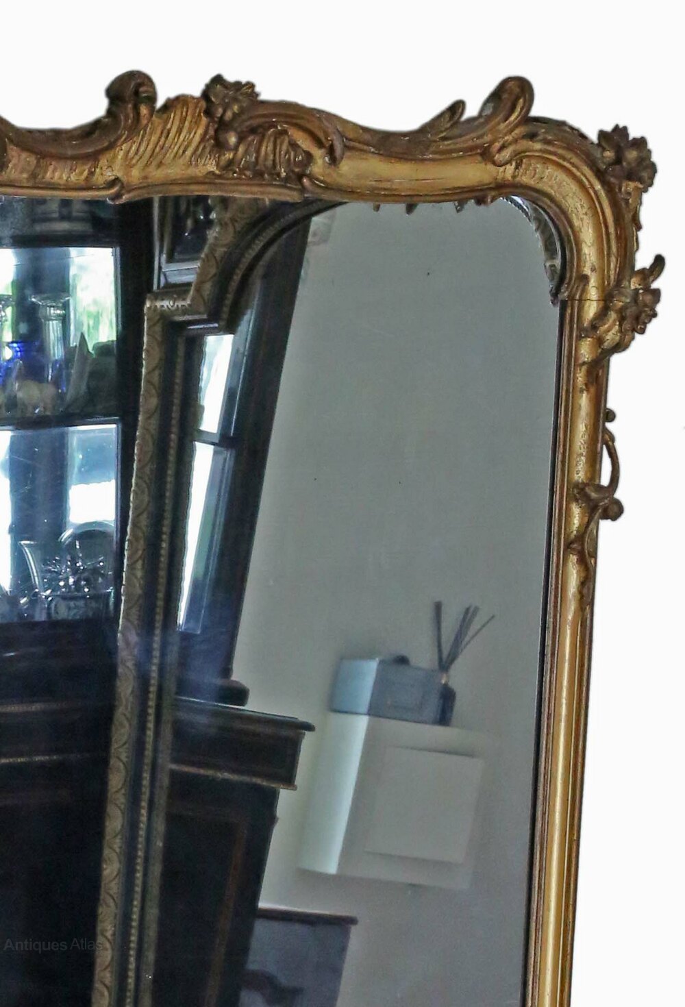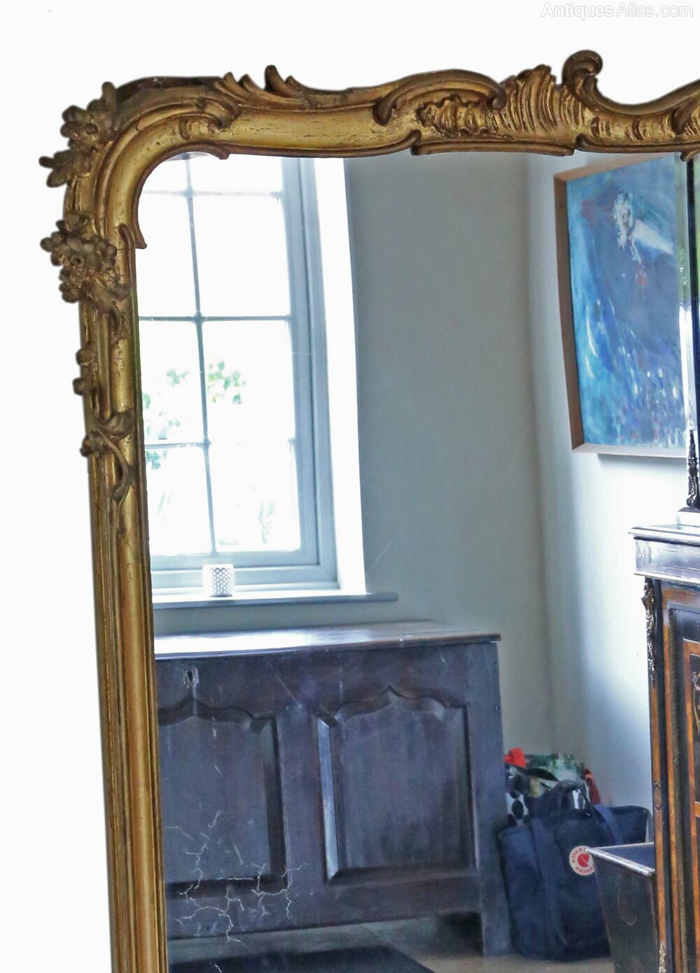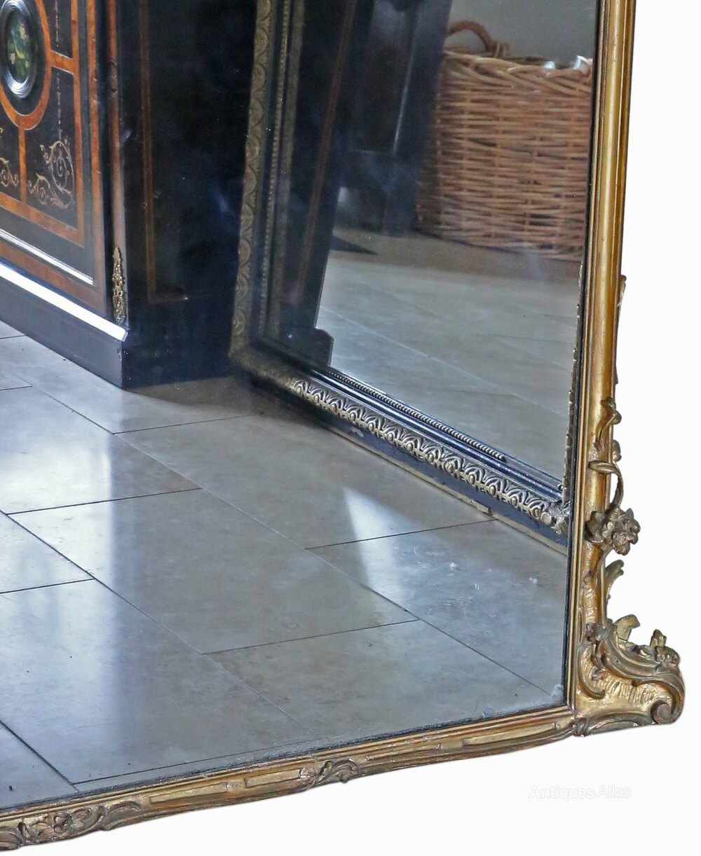 Antique Very Large 19th Century Gilt Floor Overmantle Wall Mirror – High Quality