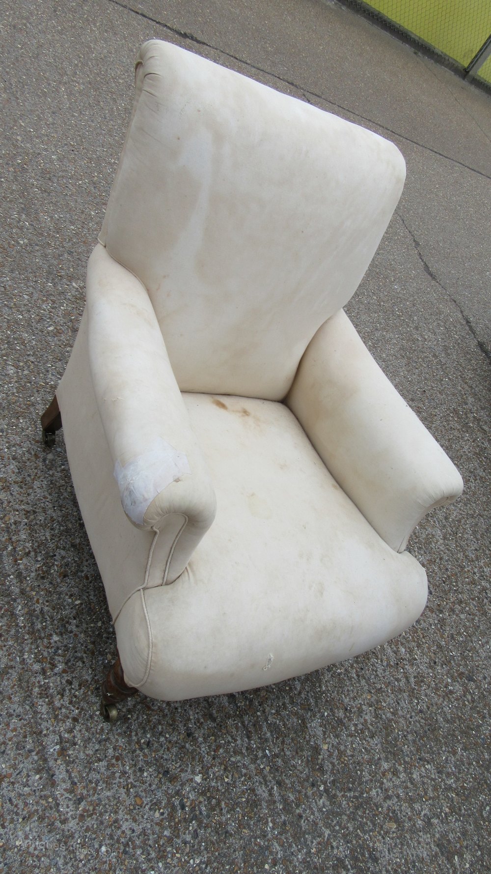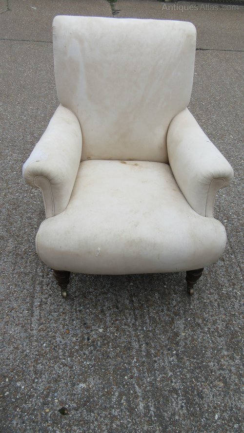 Antique Victorian Armchair stamped W.B Possibly William Birch of High Wycombe or William Barrow for Gillows .92 cm high ,80 cm wide,100 cm deep Frame and Springs Sound