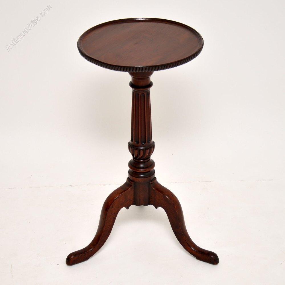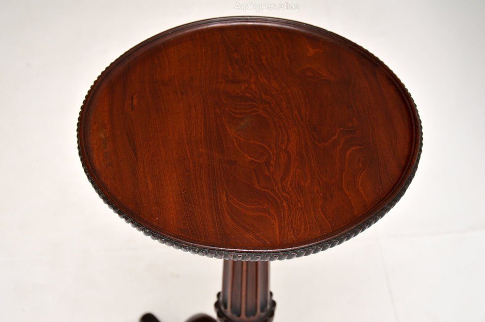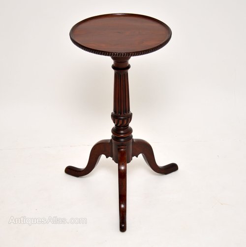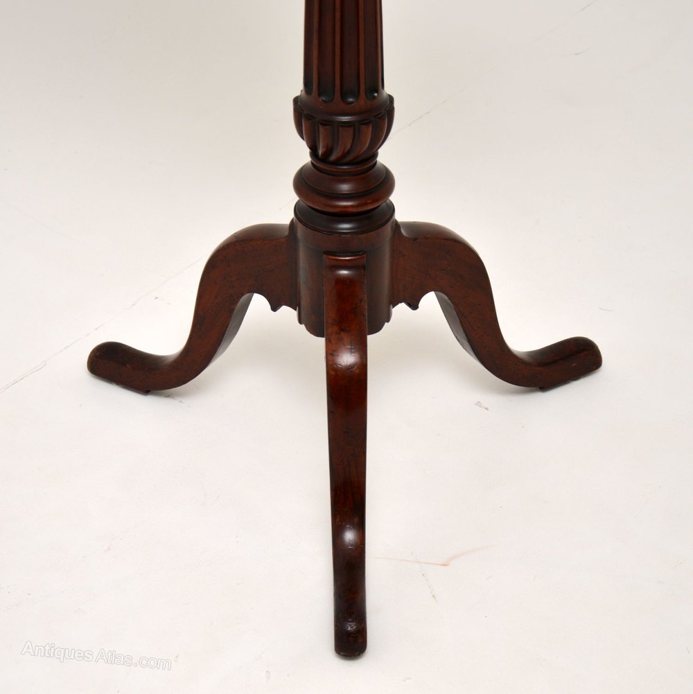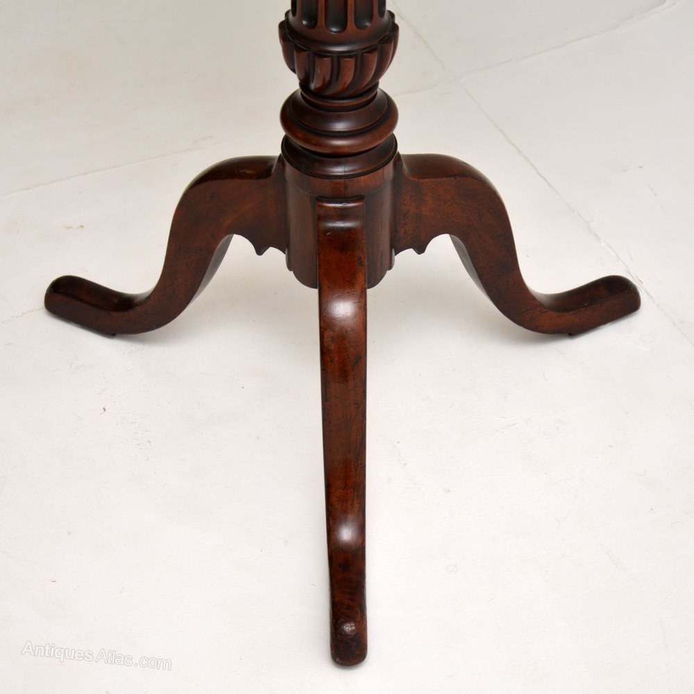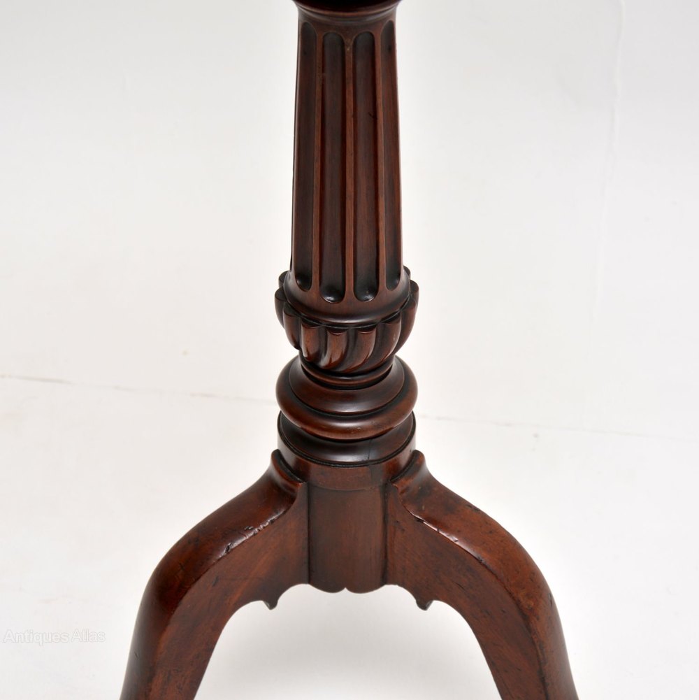 Please enlarge all the images to see the carved top rope edge & the turned fluted stem with the twist at the base, which sits on bold tripod legs.