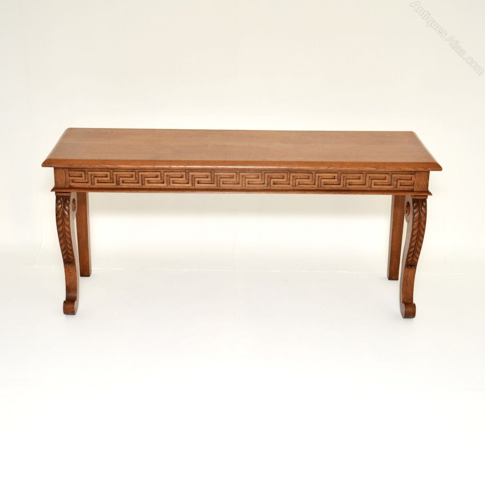 It is of extremely fine quality, with a beautiful design. The frieze is wonderfully carved with a Greek key design, the front legs have a gorgeous scrolled shape, with acanthus leaf carving on the front edges.