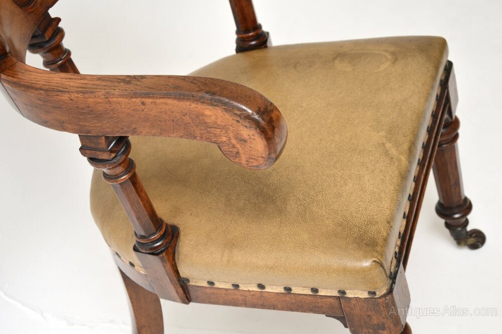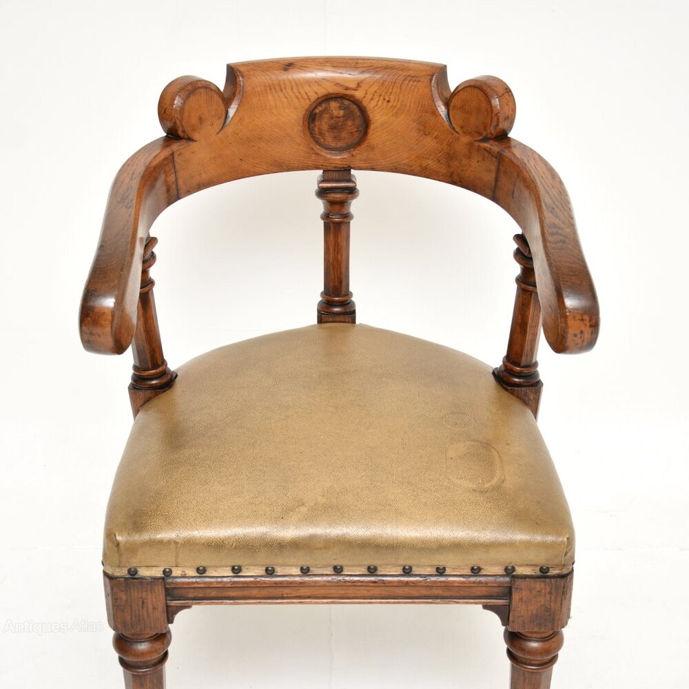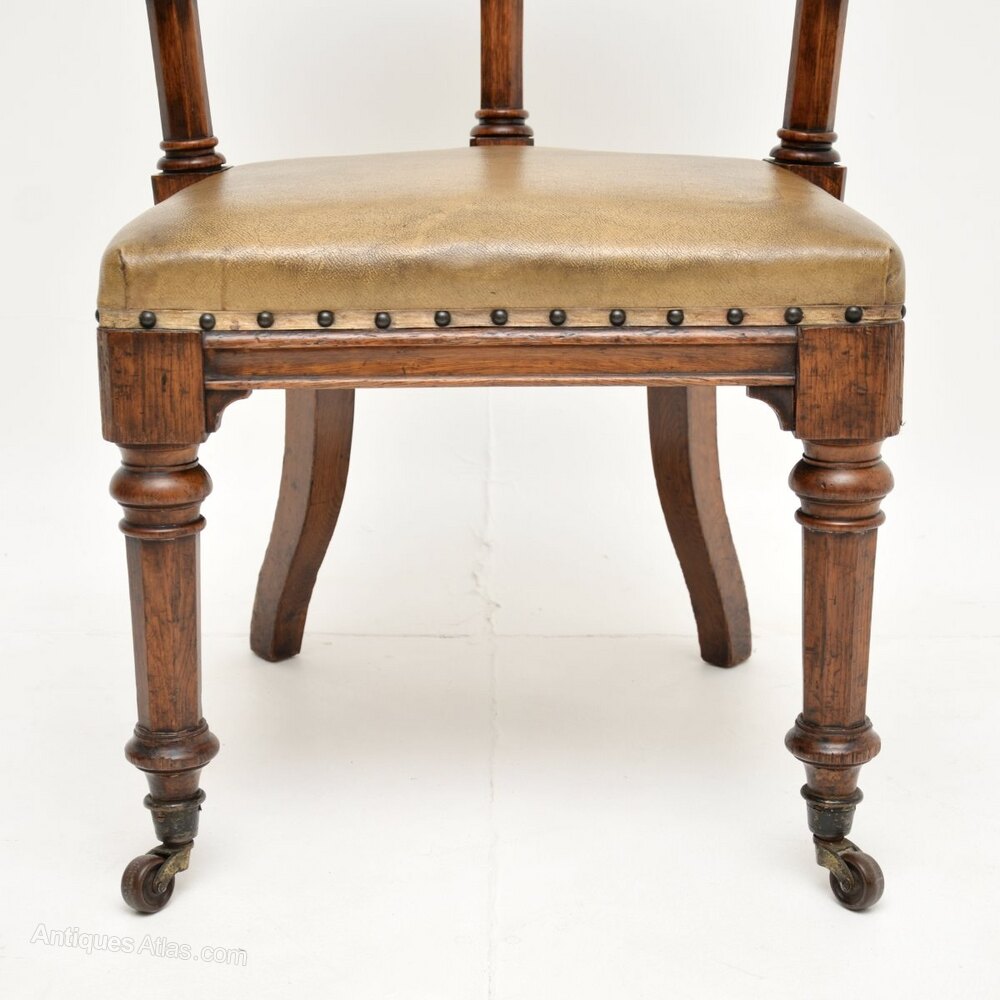A superb antique Victorian Gothic revival solid oak desk chair, made in England and dating from around the 1870-1880 period.