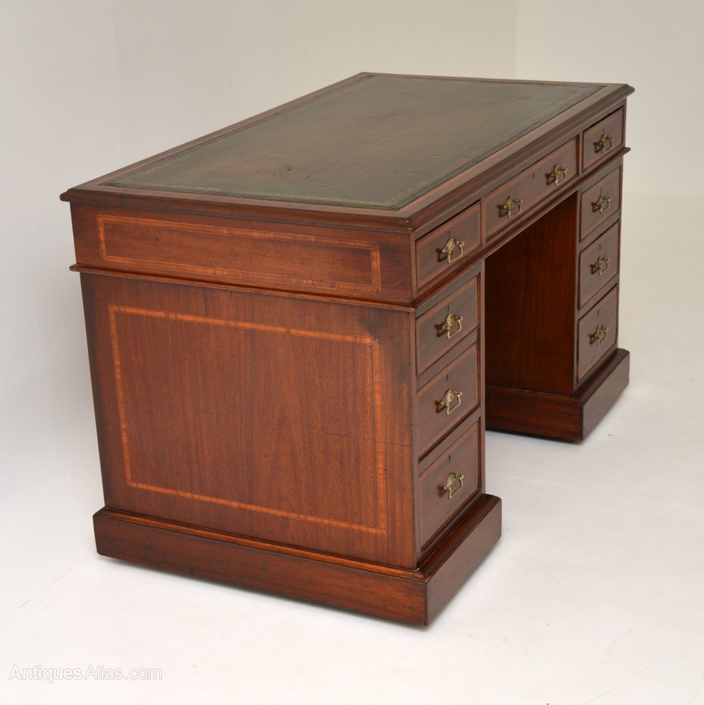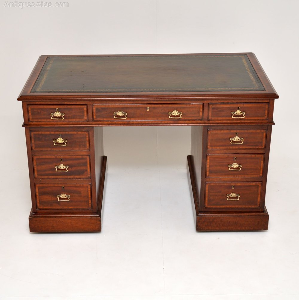 Antique Victorian Inlaid Mahogany Pedestal Desk
