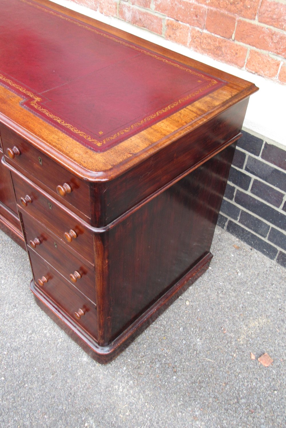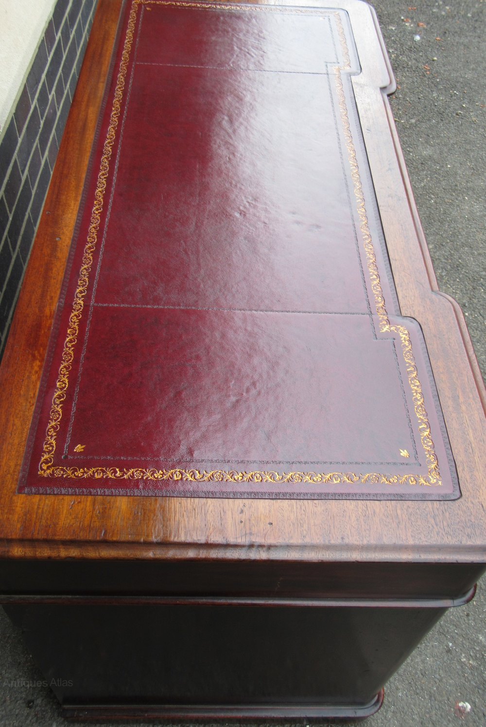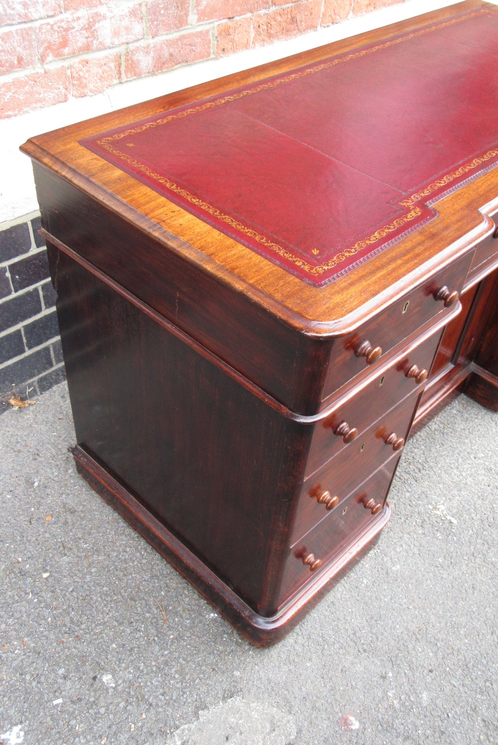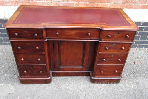 Antique Victorian Mahogany Breakfront Writing Desk with Tooled Leather Insert 75 cm high ,122 cm wide ,55 cm deep