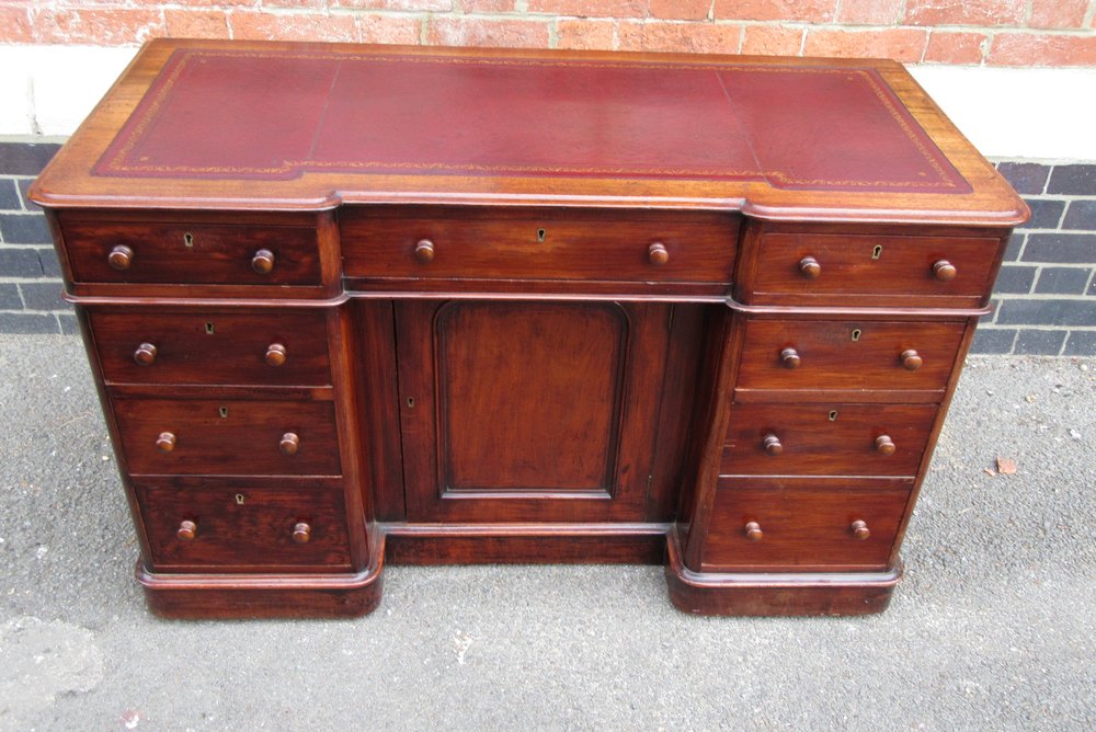 19th Century Plum Pudding Mahogany Kneehole Desk