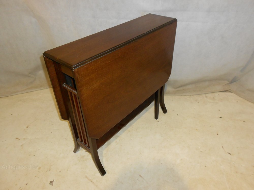 Antique Inlaid Mahogany Drop Leaf Side Table