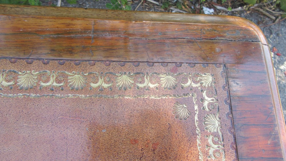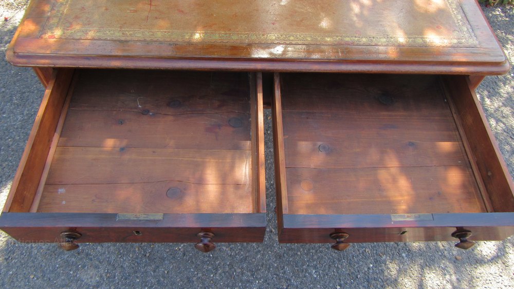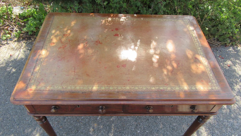 Antique Burr Walnut Leather Top Desk