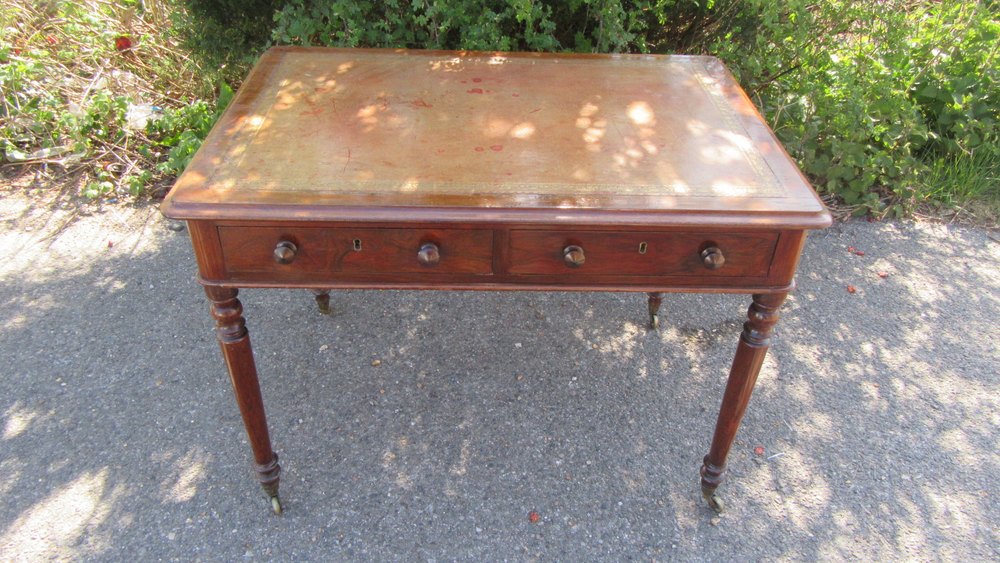 Antique Victorian Simulated Rosewood Writing Table with Two Drawers which run smoothly on Turned legs with the original brass casters ,74 cm high 99 cm wide 68 cm deep
