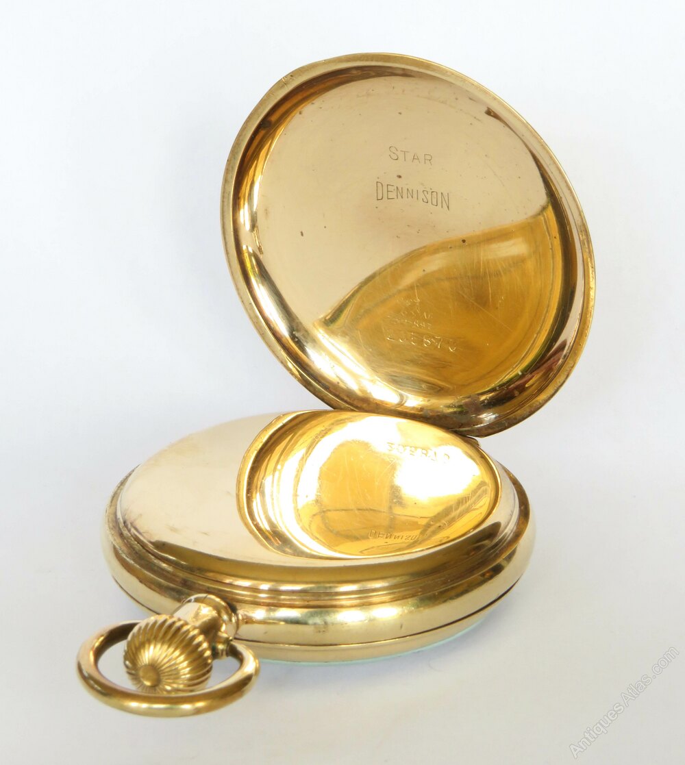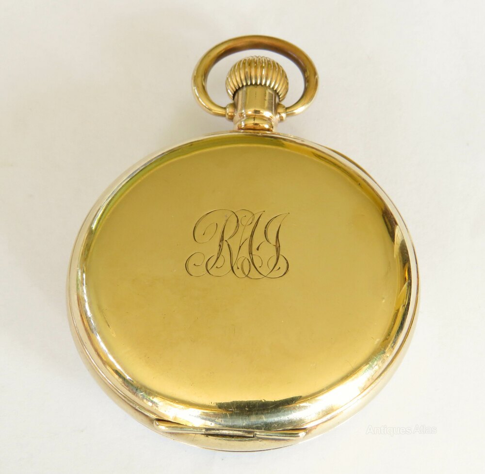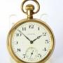 The watch measures 50mm diameter excluding the winding stem and the loop. The case is gold plated and was made by the Dennison Watch Case company, the supplier of cases to Waltham UK. The case is in good condition. The back of the watch has the initials or name of a previous owner.