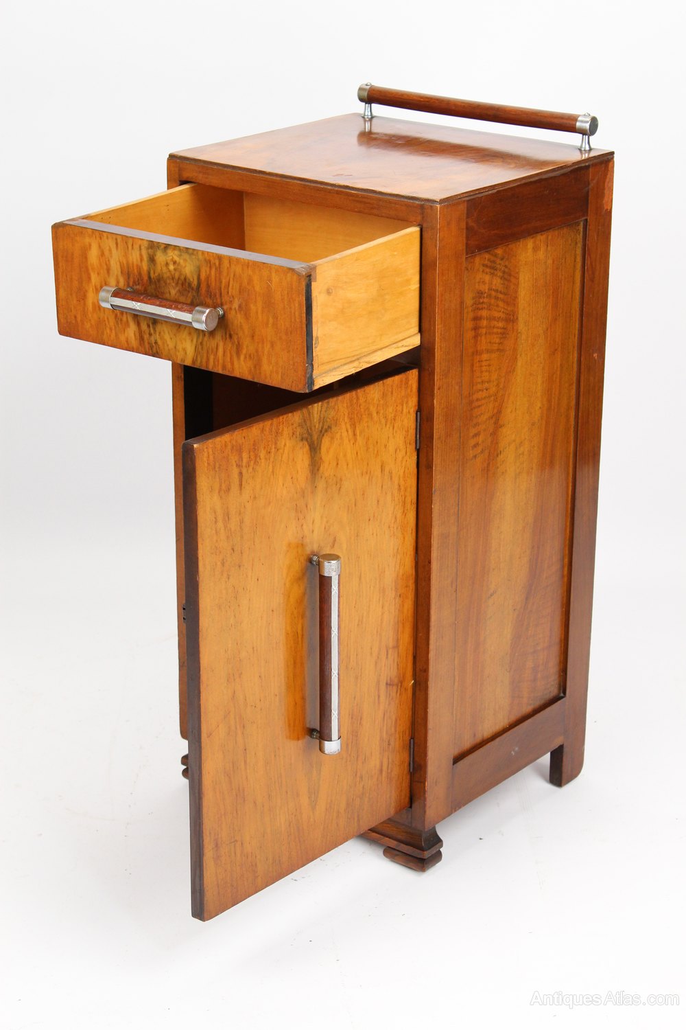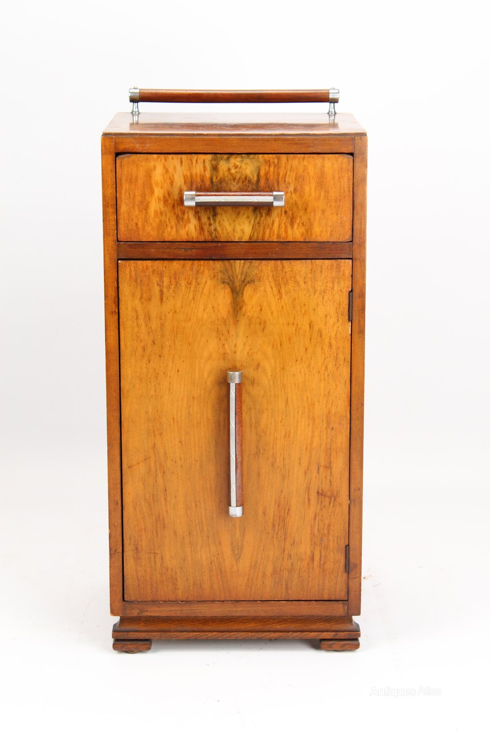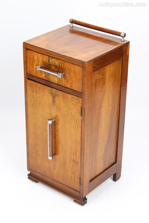 Art Deco Burr Walnut Bedside Cabinet / Cupboard