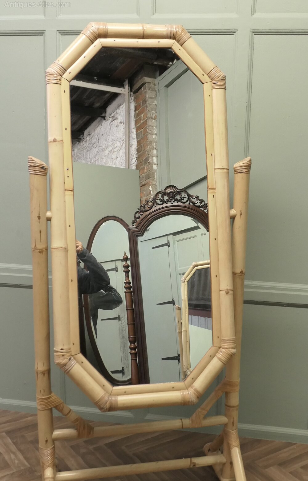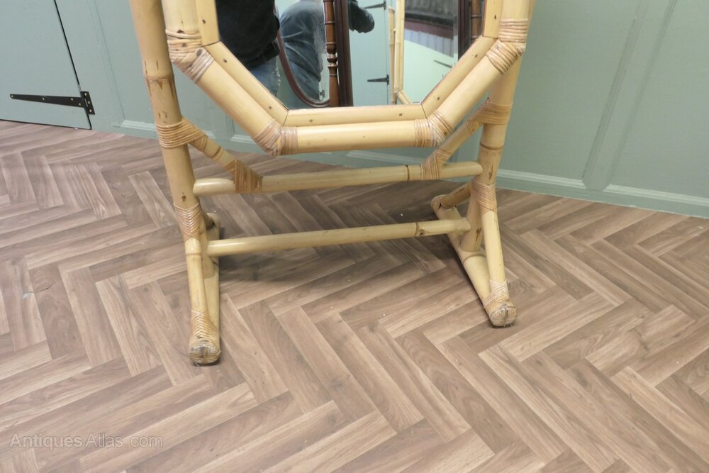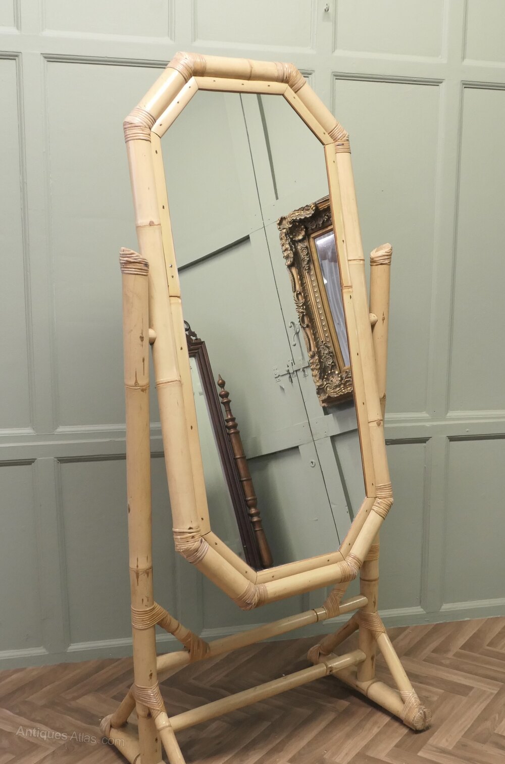 This is a very attractive piece, the tall mirror is framed with a wide bamboo border, the mirror sits sturdily in its frame, the frame is made in jumbo bamboo