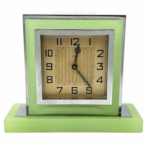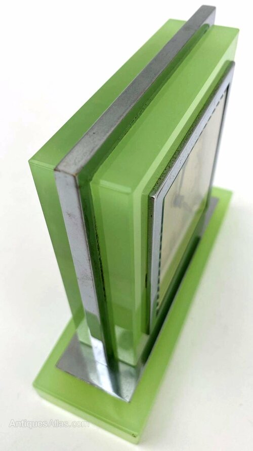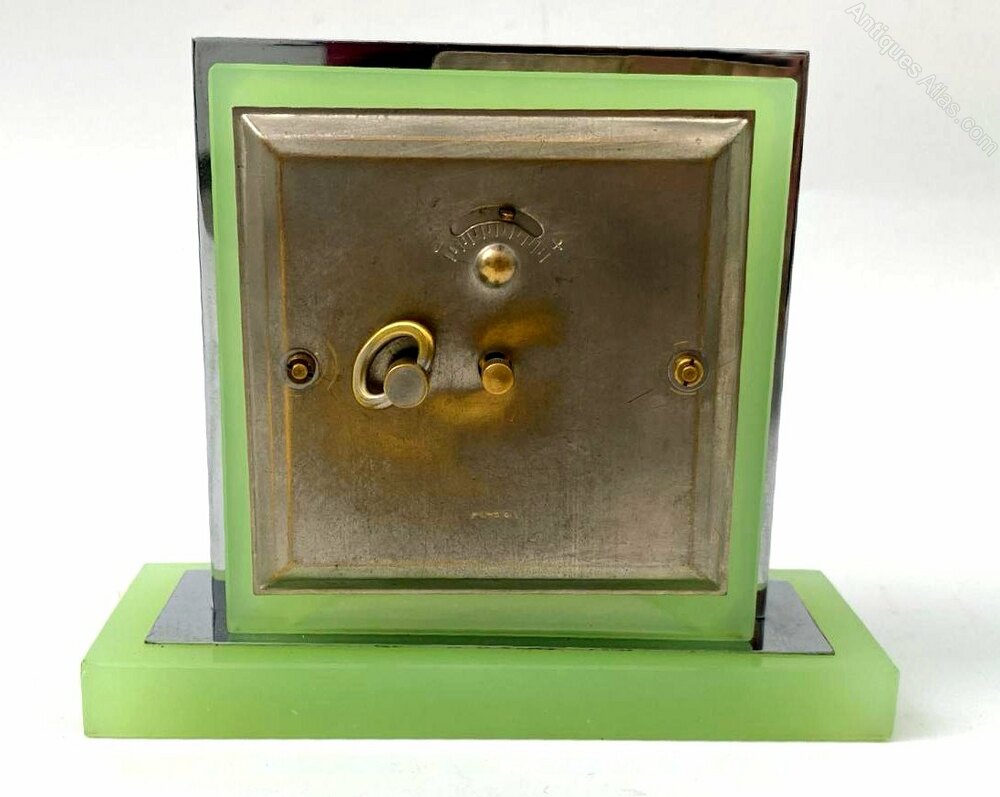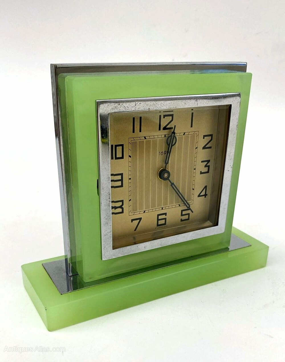 Art Deco Opaline Uranium Glass & Chrome Clock
