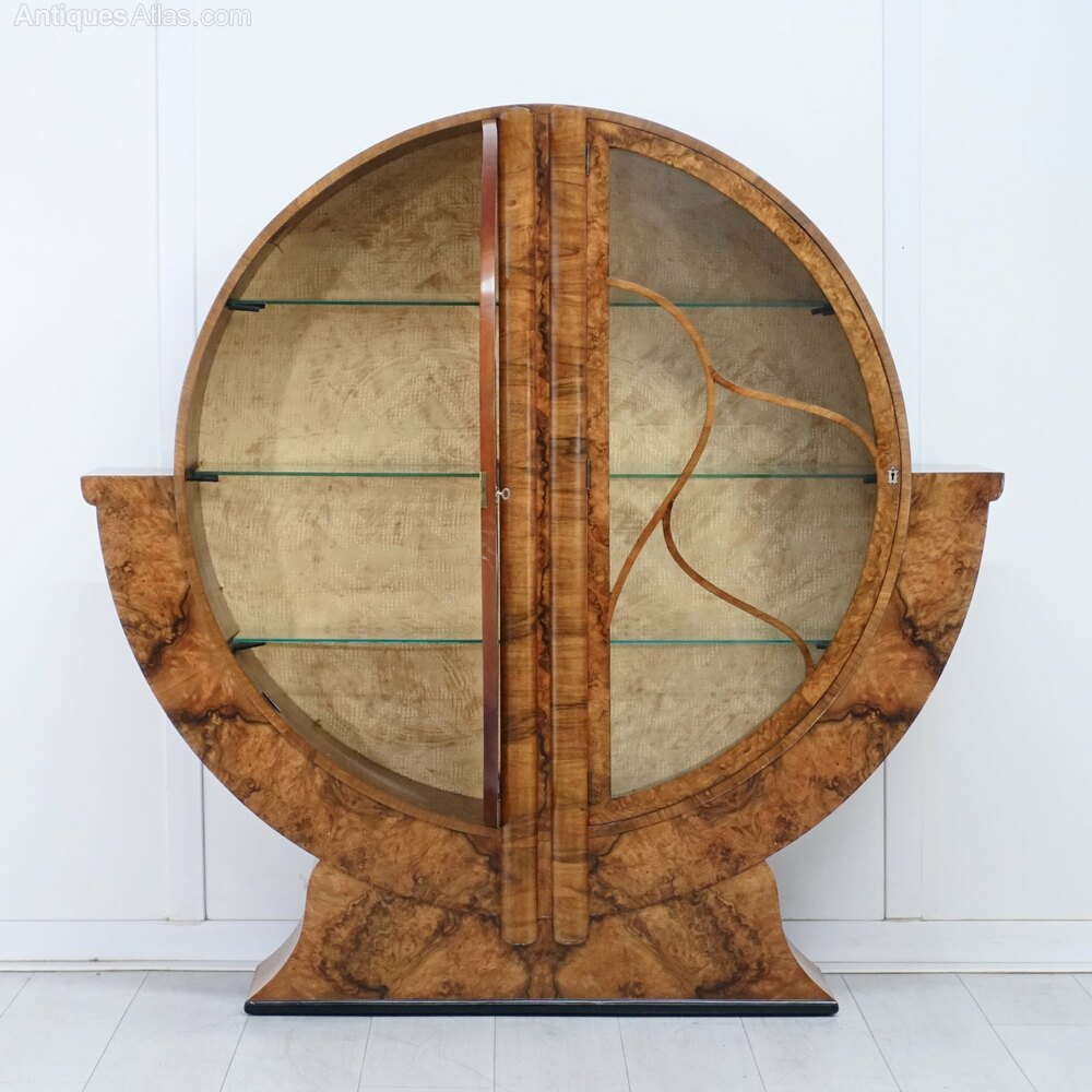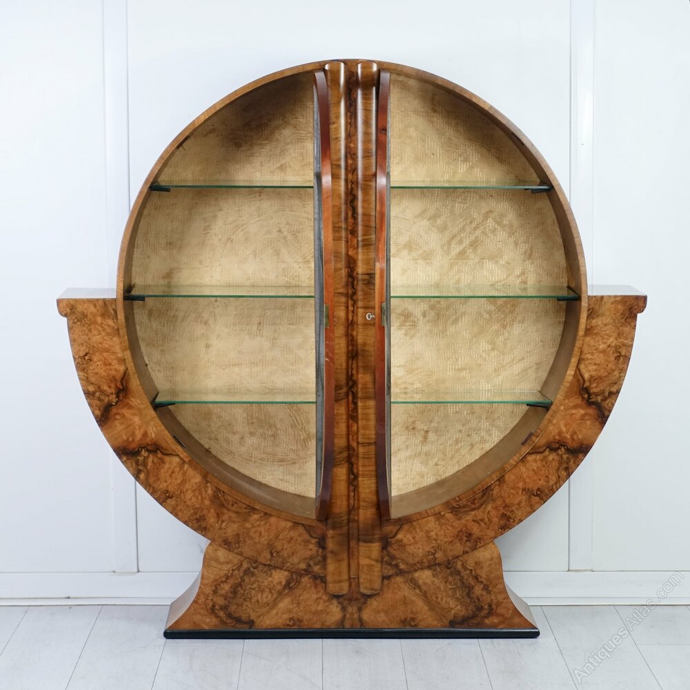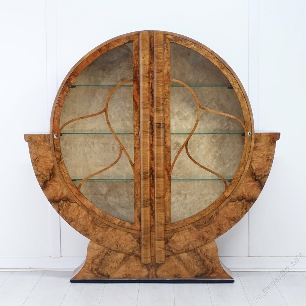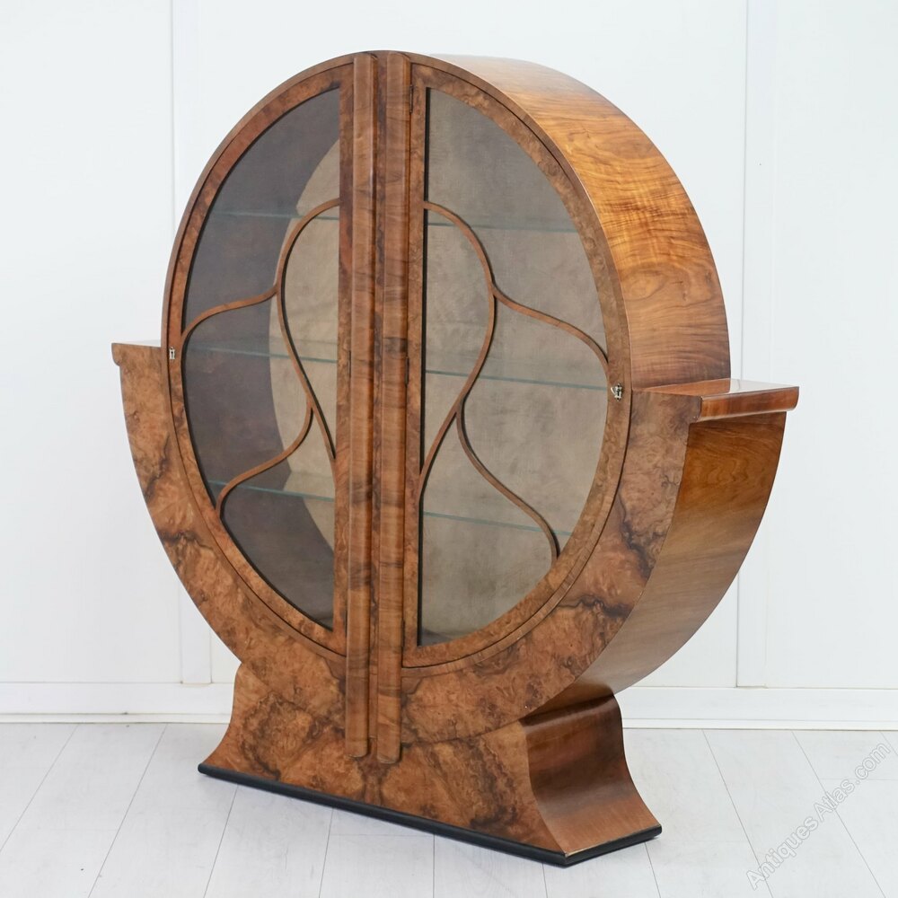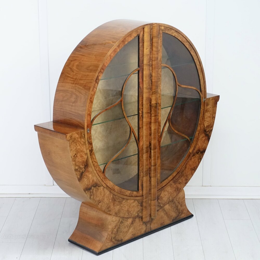 Art Deco Round Display Cabinet – Walnut, 1930s