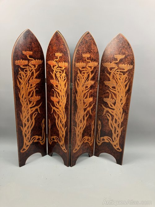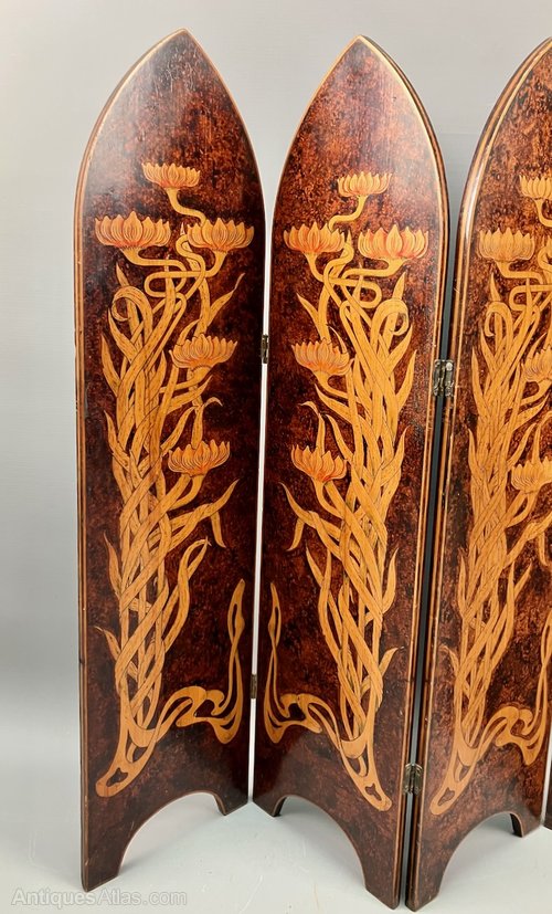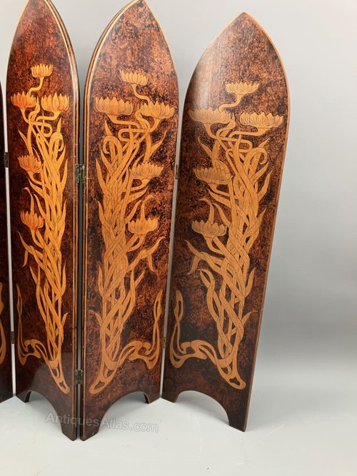 Art Nouveau Pen Work 4 Section Table or Firescreen