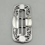 The buckle is 7.8cm / 3ins high and 4cm / 1.5ins wide. It weighs in at a respectable 28.7g / 1oz of solid Sterling Silver.