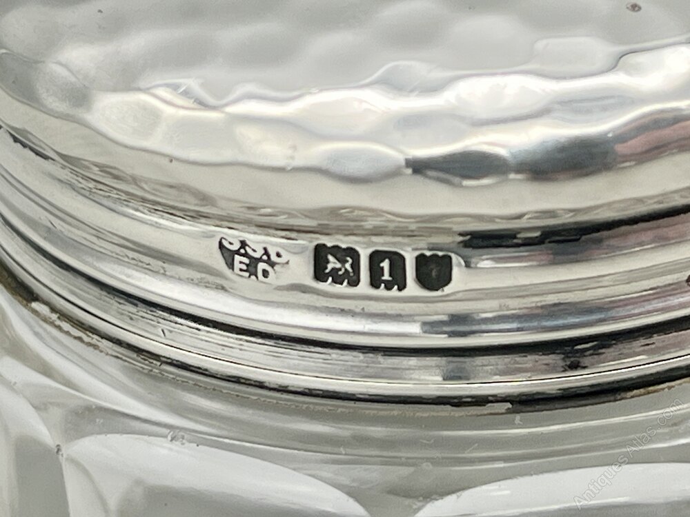 Condition is very good, with no chips or cracks in the glass, no dings or dents in the silver and just the superficial surface wear that you would anticipate after nearly 120 years of good service. The lid screws on smoothly and shuts securely. Please make sure to view all the photographs.