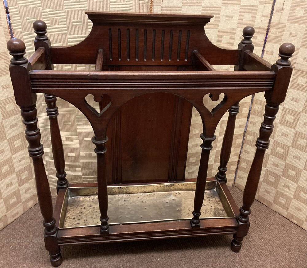 no-530-Arts & Crafts mahogany Stick-stand with brass tray in very good condition