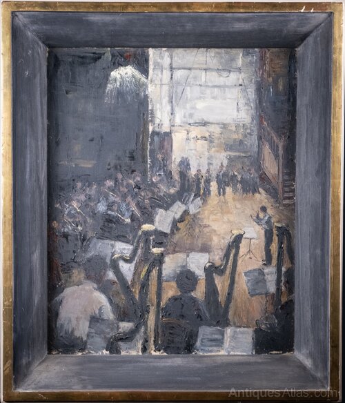 The work is extremely atmospheric, almost impressionistic. The unusual composition makes it feel like one is amongst the orchestra, and the bold use of contrast and impasto gives the work a real verve.