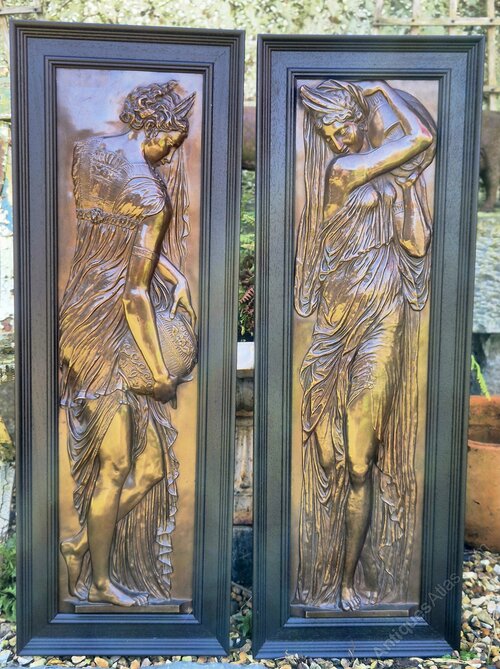 Pair Of Antique Carnival Plaques, Venetian, Bronze