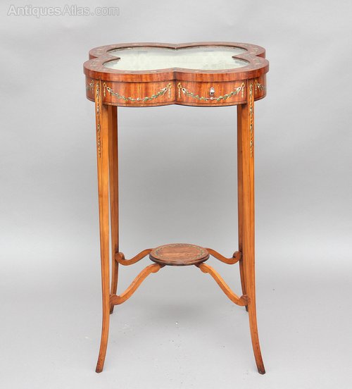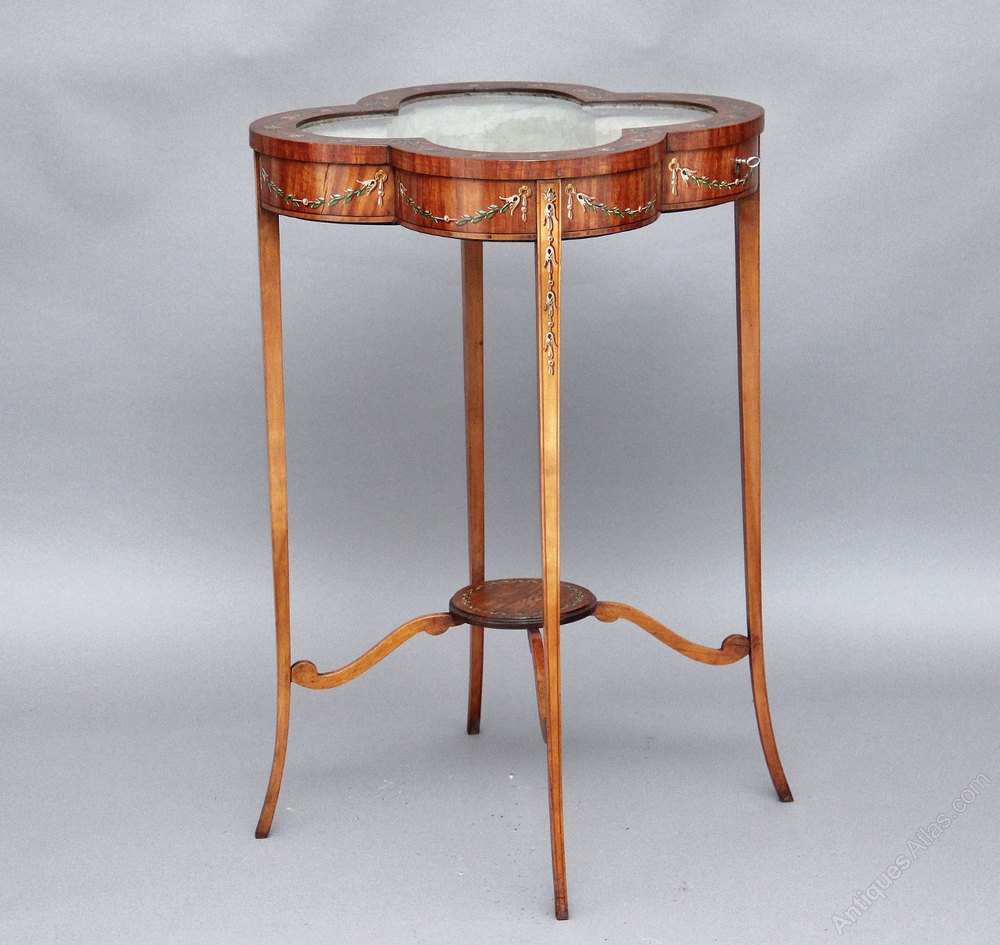 19th Century satinwood painted bijouterie table in the Sheraton style with workable lock.