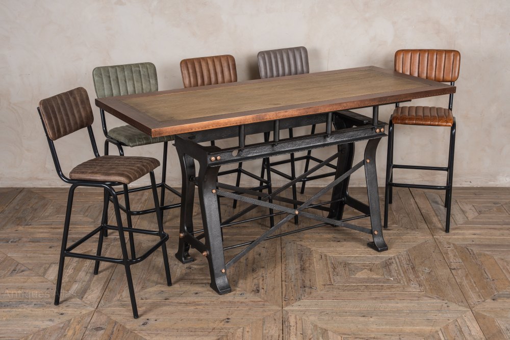 An inspirational piece of industrial antique furniture, this Blacksmith's Cast Iron Upcycled Bar Table is a rare find. Originally a blacksmith's workbench, this vintage bar table is seeped in history, bringing character to your space. This upcycled table has a cast iron table base, strong and sturdy, this bar table will gain lots of authentic characteristics with age that will last for years to come. Perfect for an industrial bar or restaurant, this table is a must-have industrial piece.