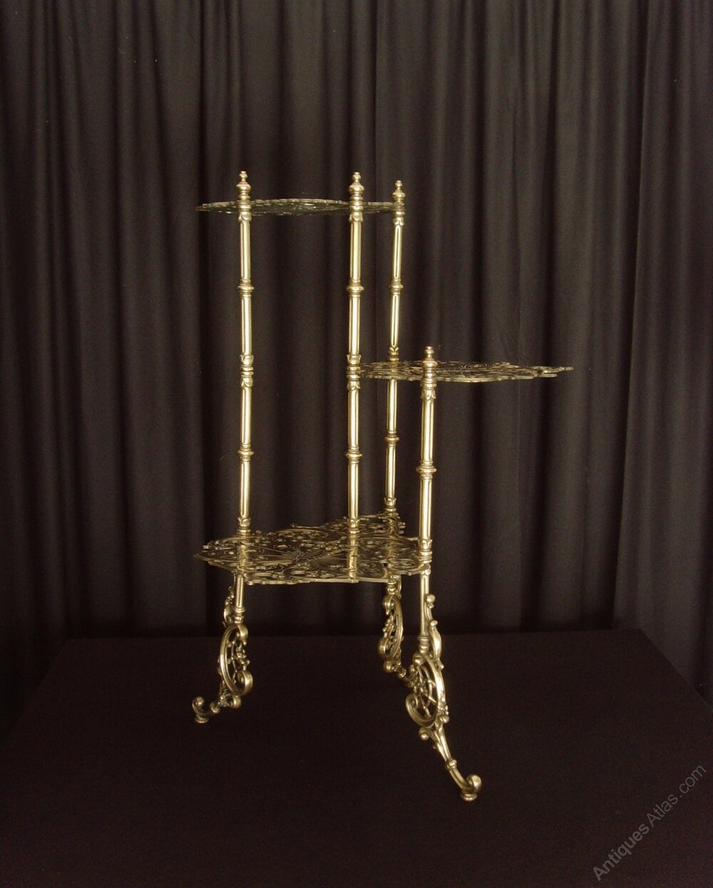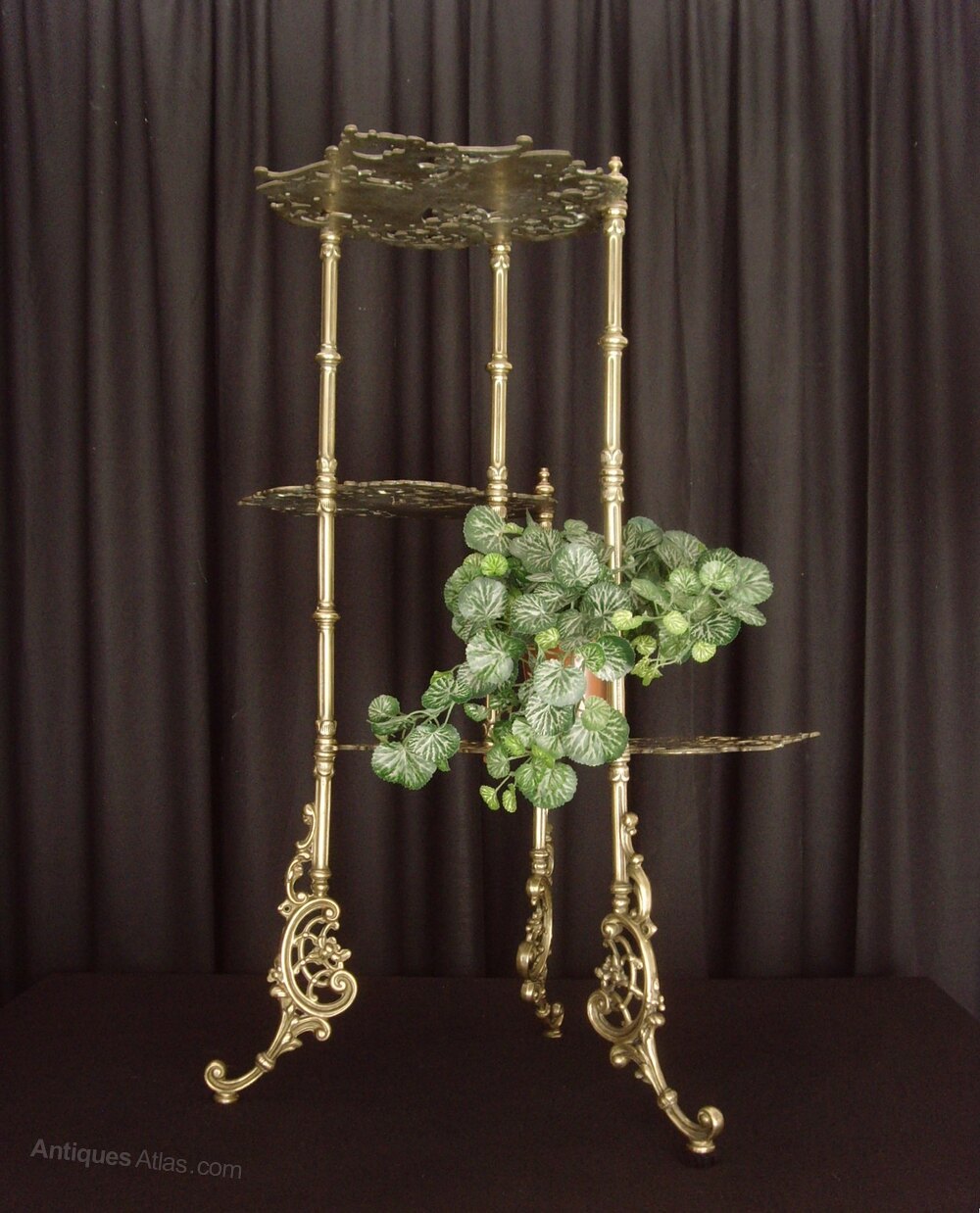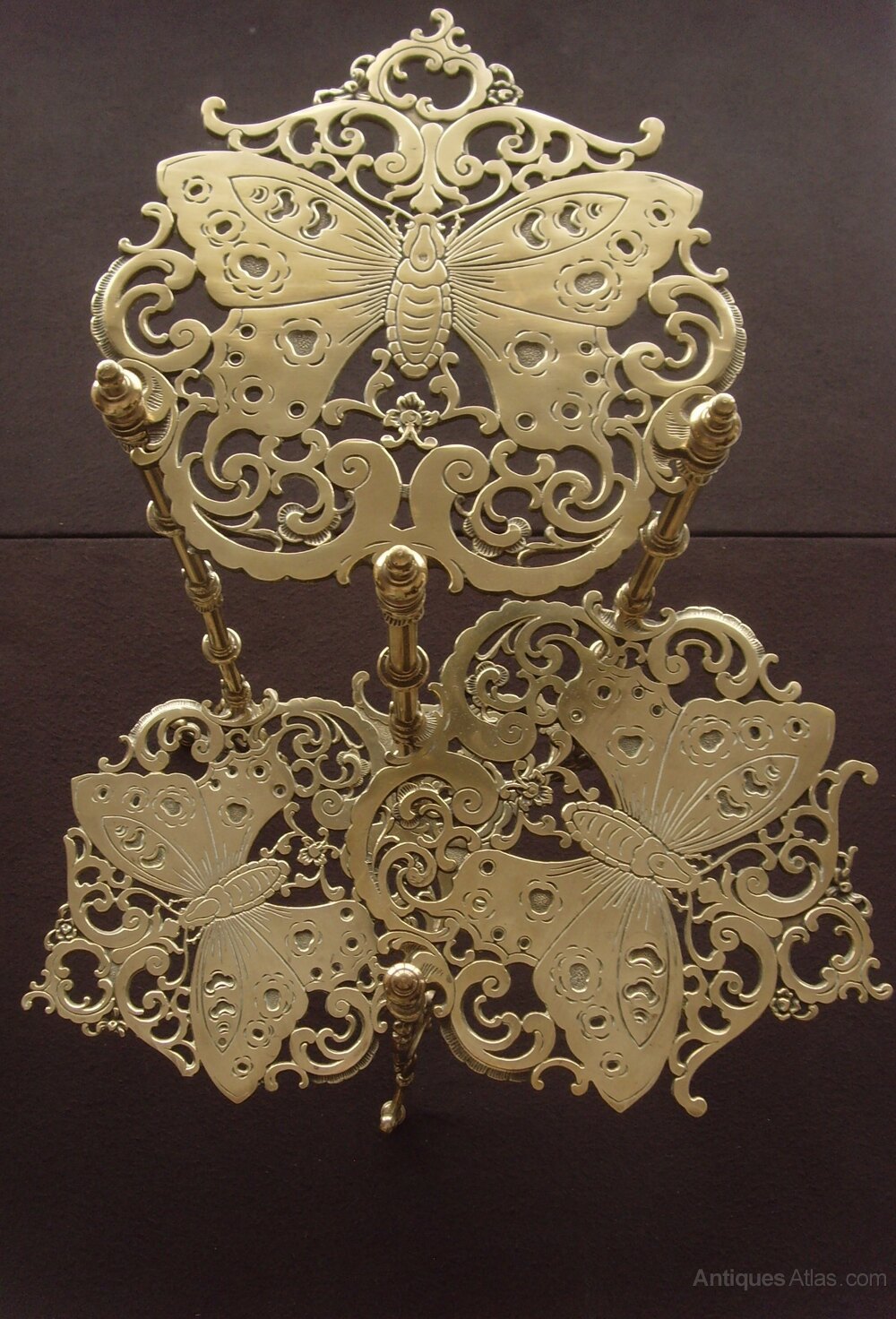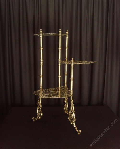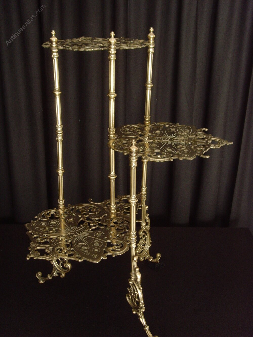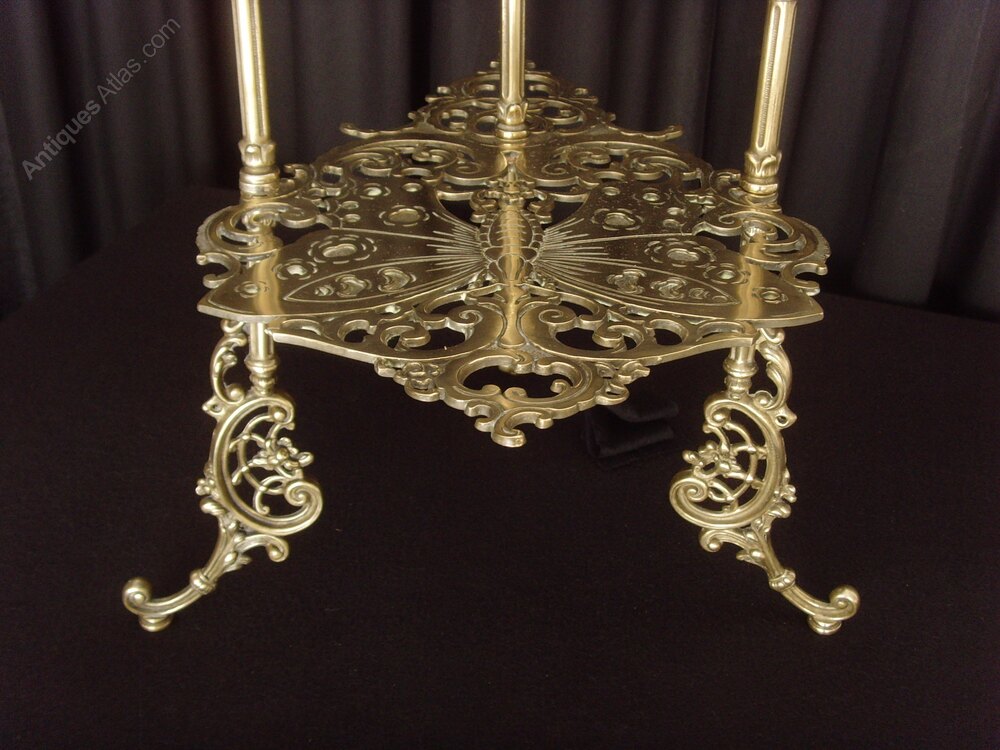 Brass 3 Tier Plant Stand Pierced Butterfly Motif