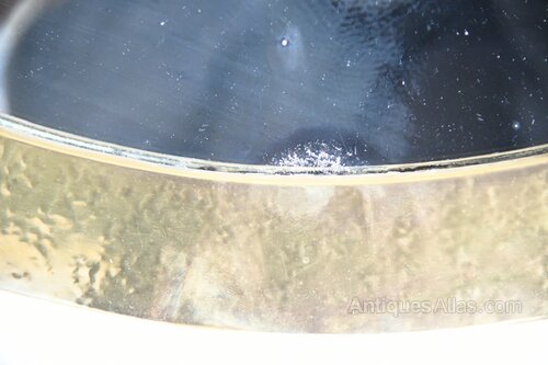 Brass Arts & Crafts Oval Wall Mirror. The mirror is set within a hammered brass frame, simple oval plate with hammered brass frame and pierced roundels. A decorative yet functional piece, ideal for a hallway, bedroom or above a fireplace, offering timeless Arts & Crafts character and strong visual appeal