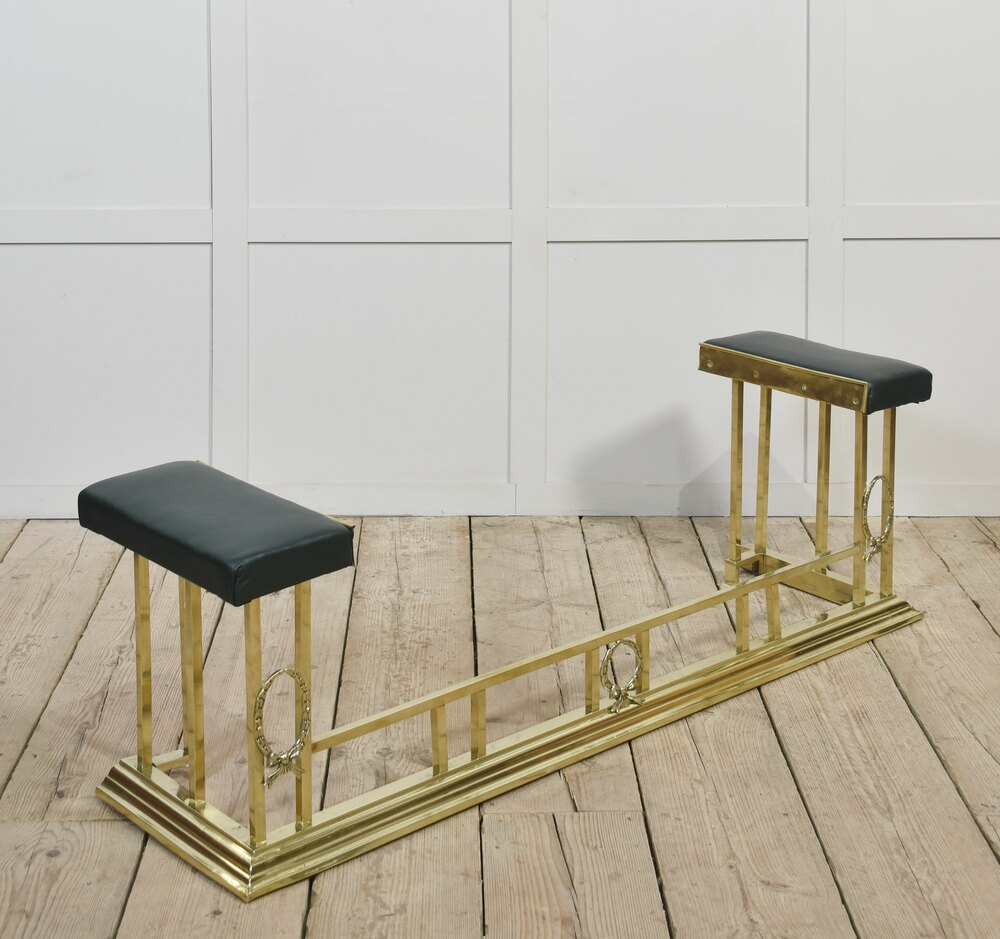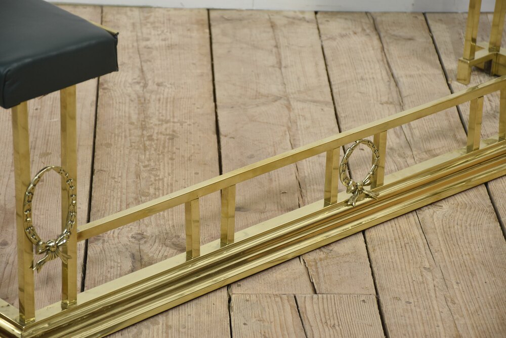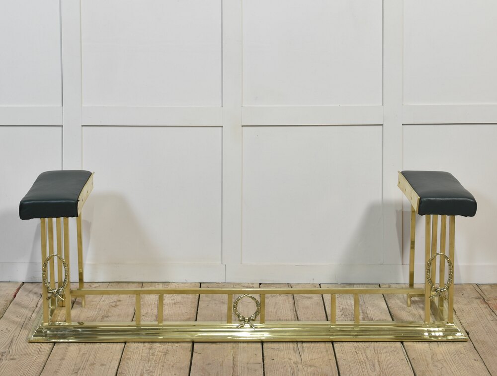 Leather Upholstered Brass Club Fender