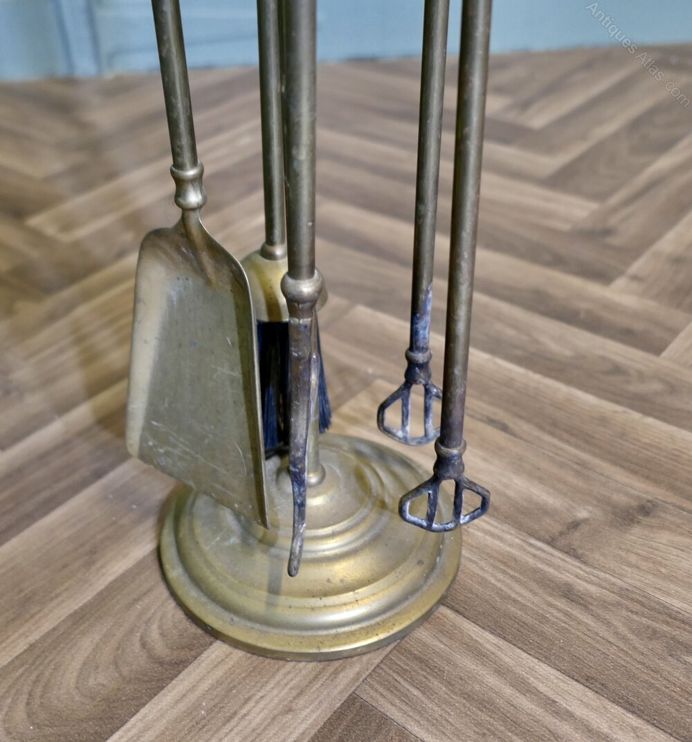 Antique Fireside Companion Set, French Bronze Fire andirons