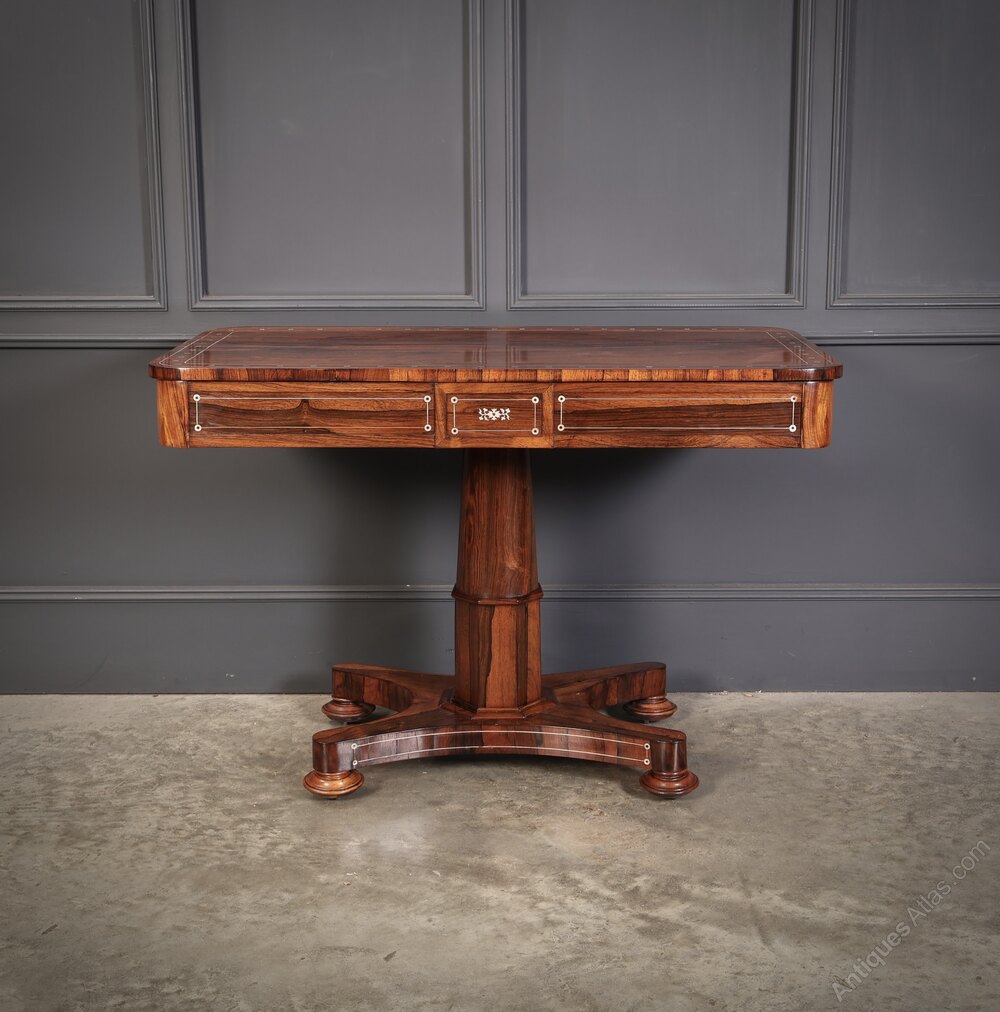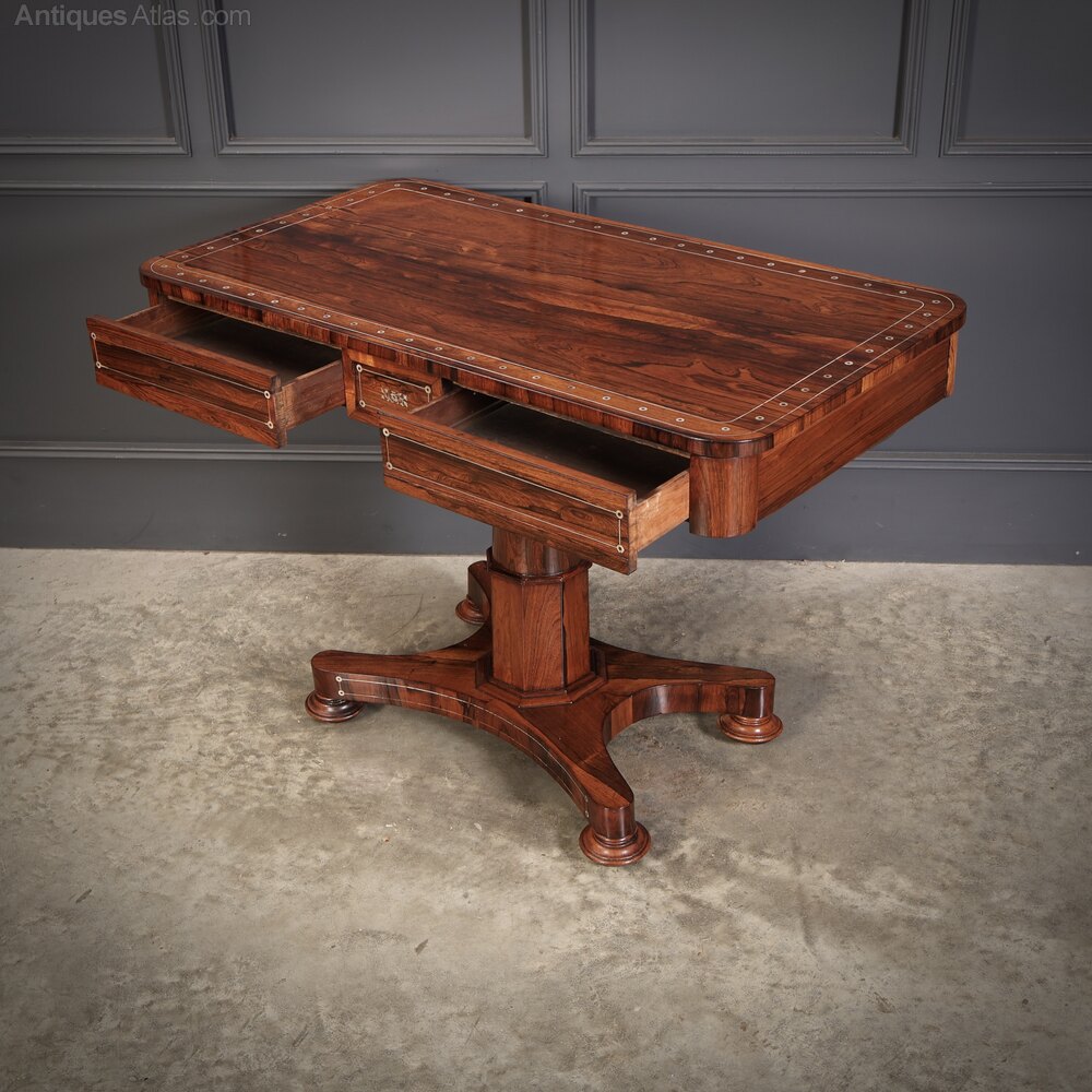 This is an exceptional brass inlaid rosewood library table, circa 1825, in excellent showroom condition.