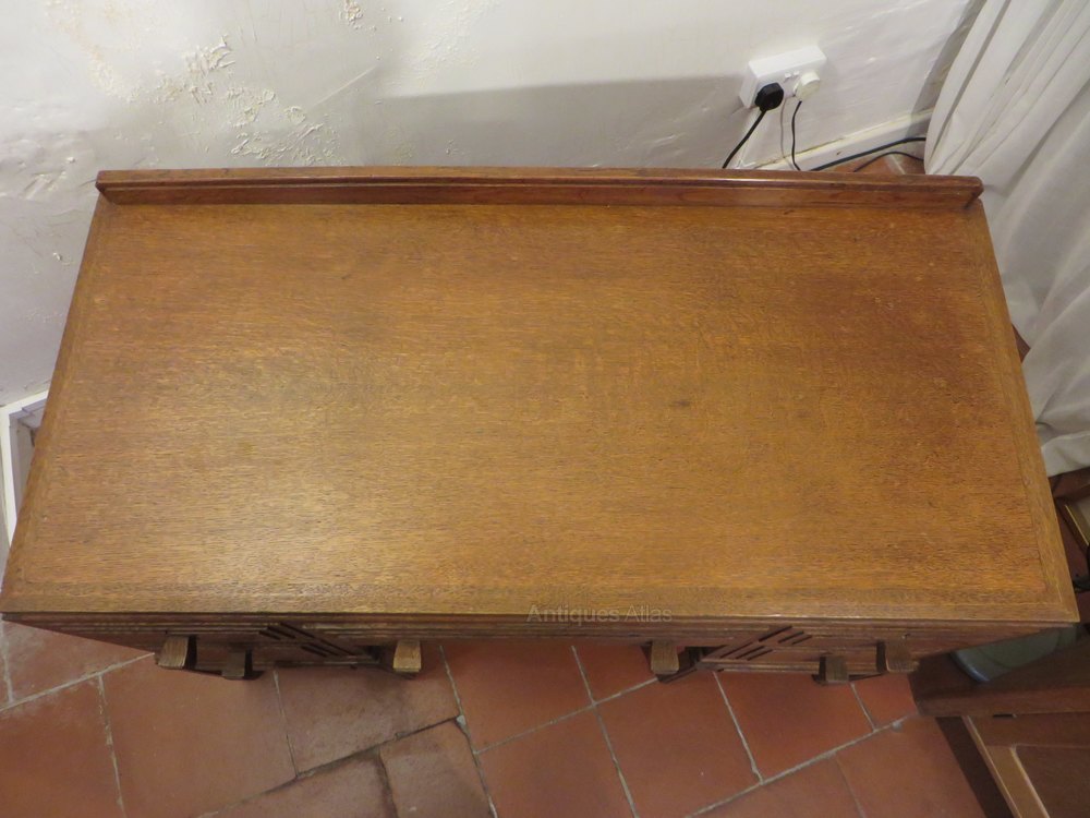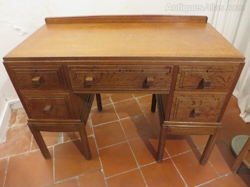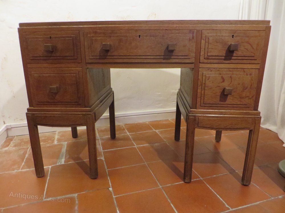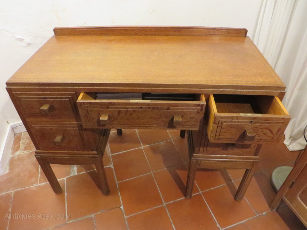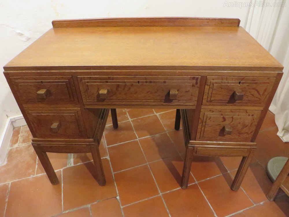 Brynmawr quartersawn oak desk, top three drawers with locks.