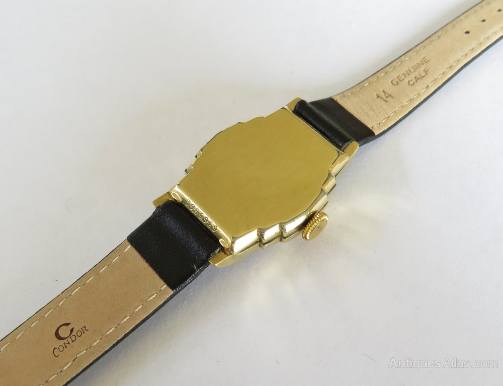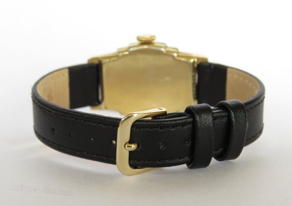 The watch measures 30mm high excluding the lugs and 25mm wide excluding the lugs. Originally designed as a man's watch, it is on the small side by today's standards so would suit a slimmer wrist. The case is rolled gold. There is a “ding” to each of the sides but the front is in good condition.