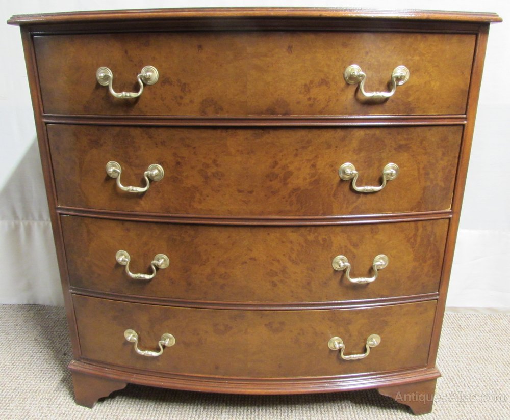 Burr Walnut Bow Front Chest of Drawers