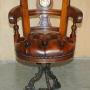We are delighted to offer for sale this lovely stunning fully restored hand carved Mahogany framed, early Victorian circa 1840-1850 Ships Captains armchair with cast iron heavily patinated base depicting Dolphins and newly upholstered Chesterfield tufted hand dyed brown leather seat