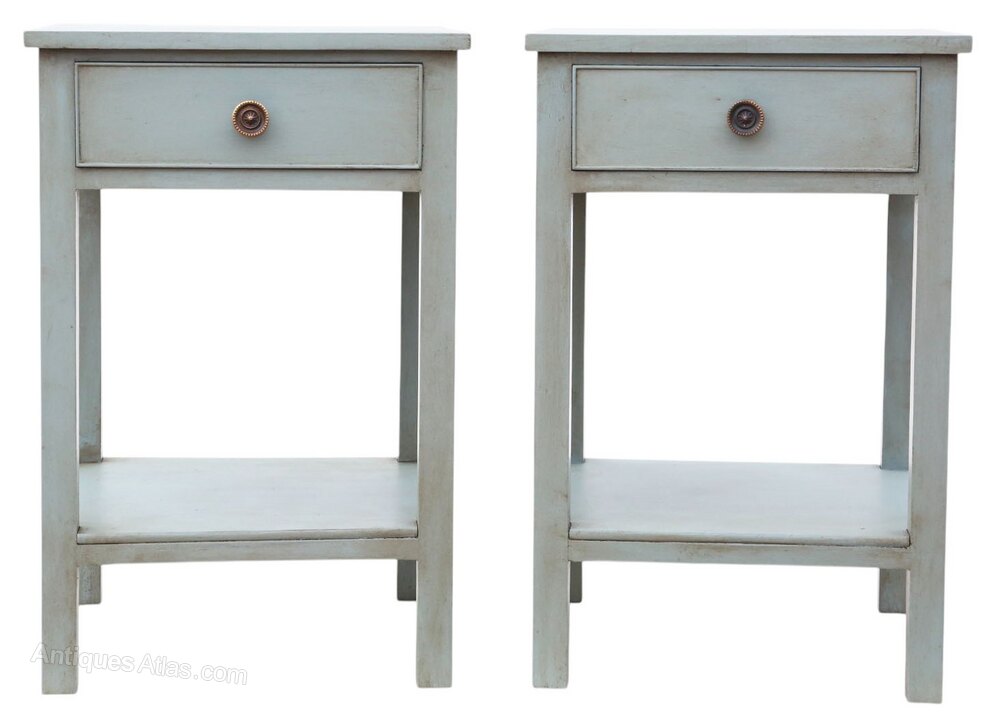 Antique c.1920 Pair of Georgian Revival Painted Lamp or Bedside Tables – Fine Quality Furniture