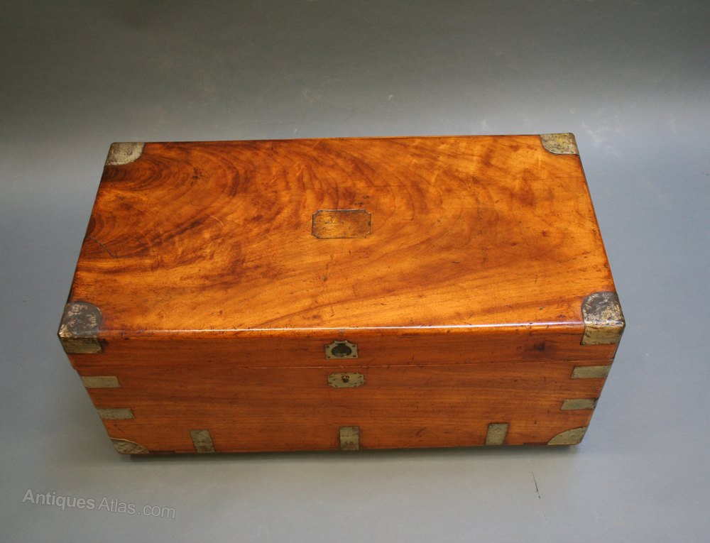 Very nicely figured with plenty of brass bindings and carrying handles.