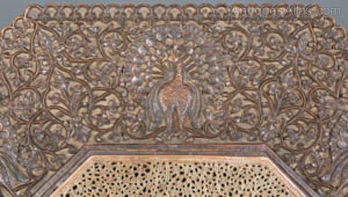 C19th carved Eastern table peacock carving