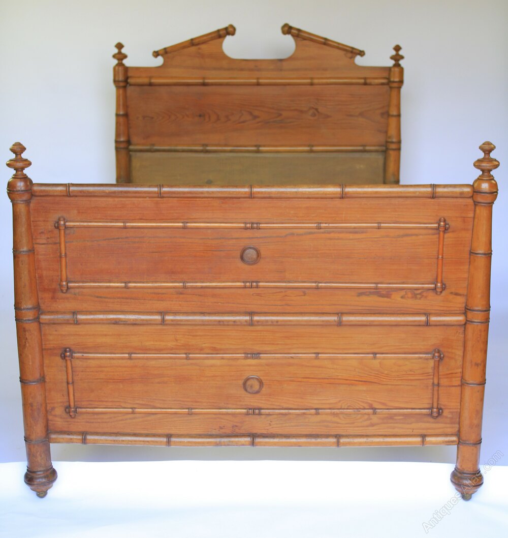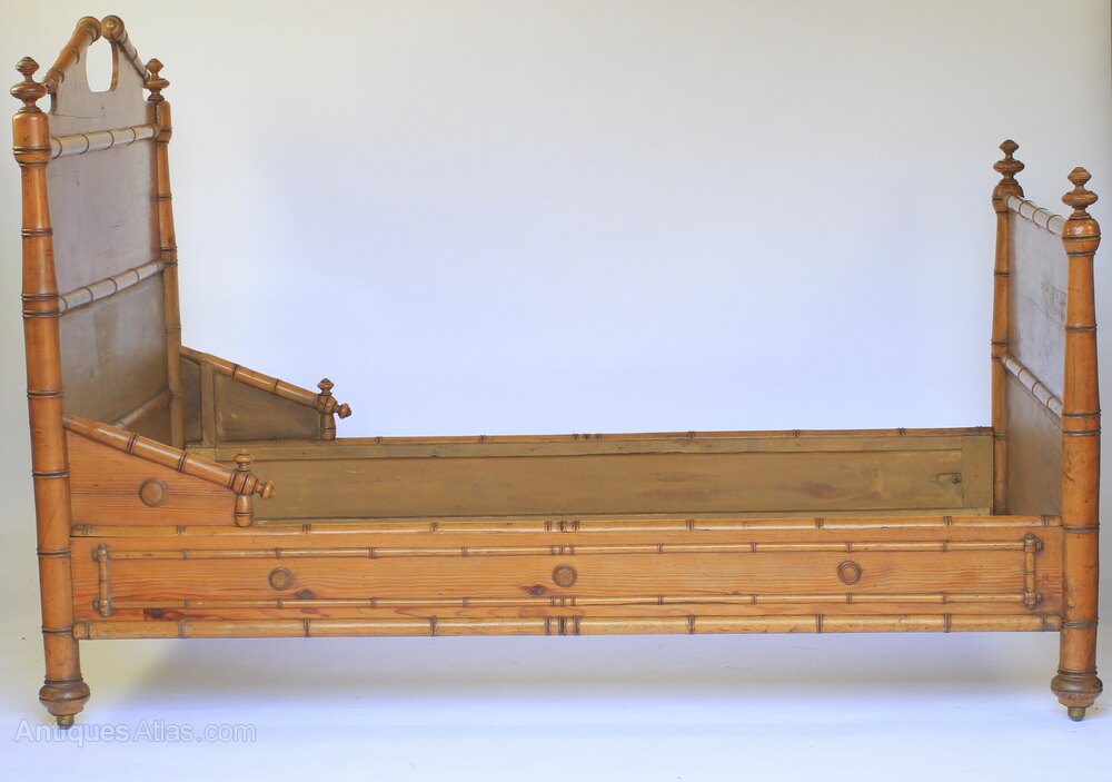 C19th French Faux Bamboo & pine Bed