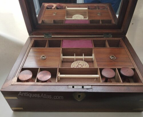 Victorian Rosewood Mother Of Pearl Inlaid Work Box