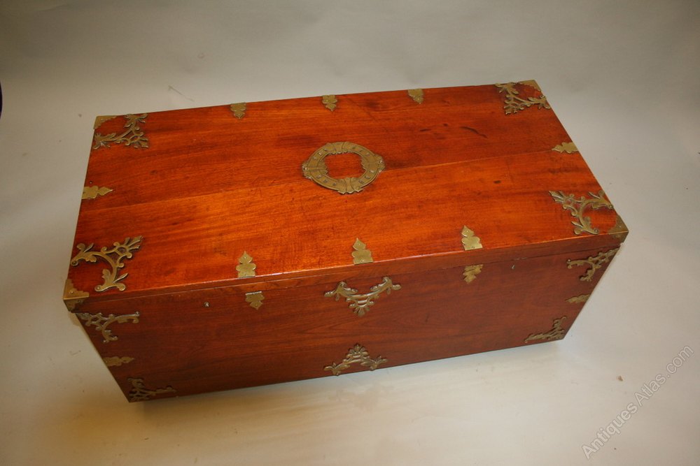 Late Nineteenth Century profusely decorated with brass mounts, with carrying handles.