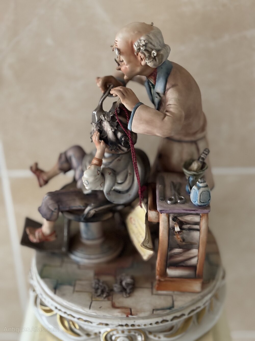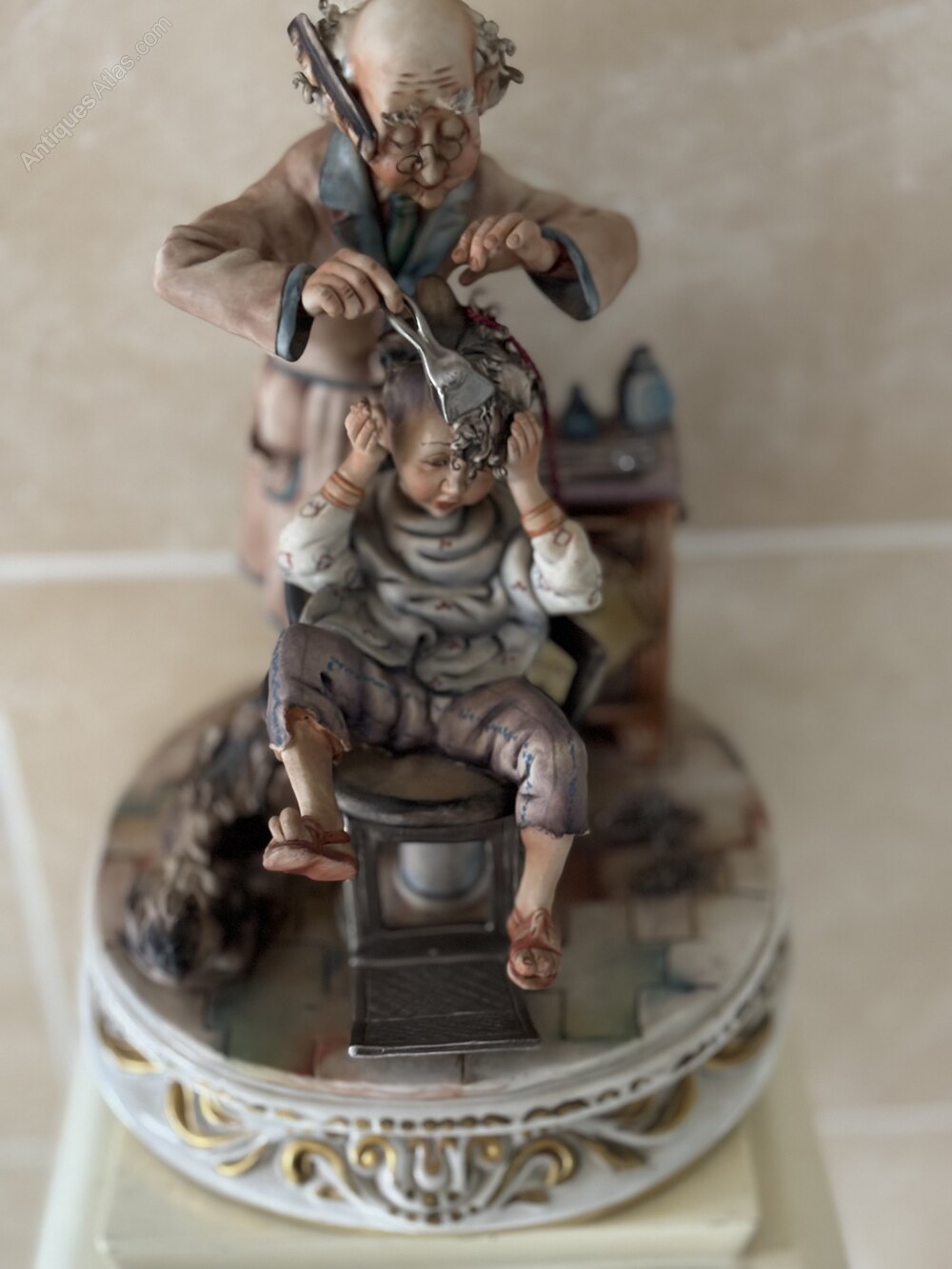 A Large 1970S Capodimonte figure called Barber and boy by Milio