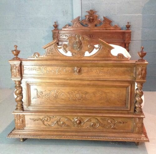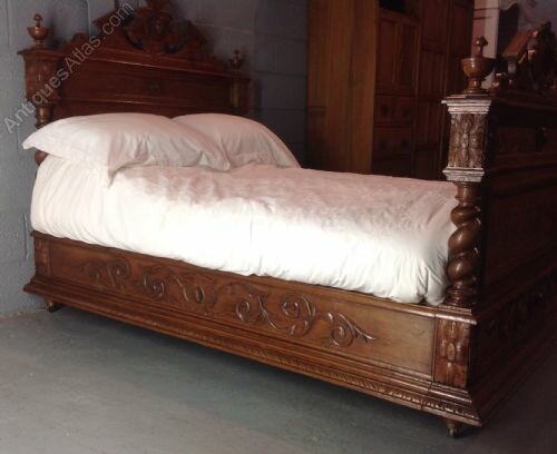 The bed has barley twist columns to each corner and a wonderful carved plinth surrounding the base.
