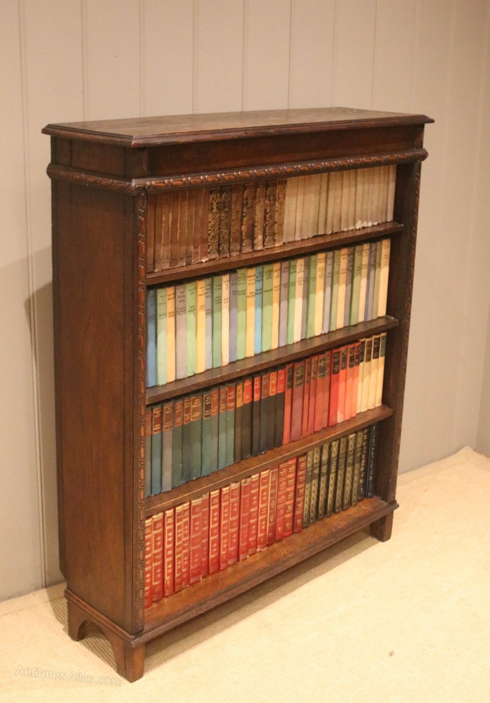 Carved Oak Open Bookcase
